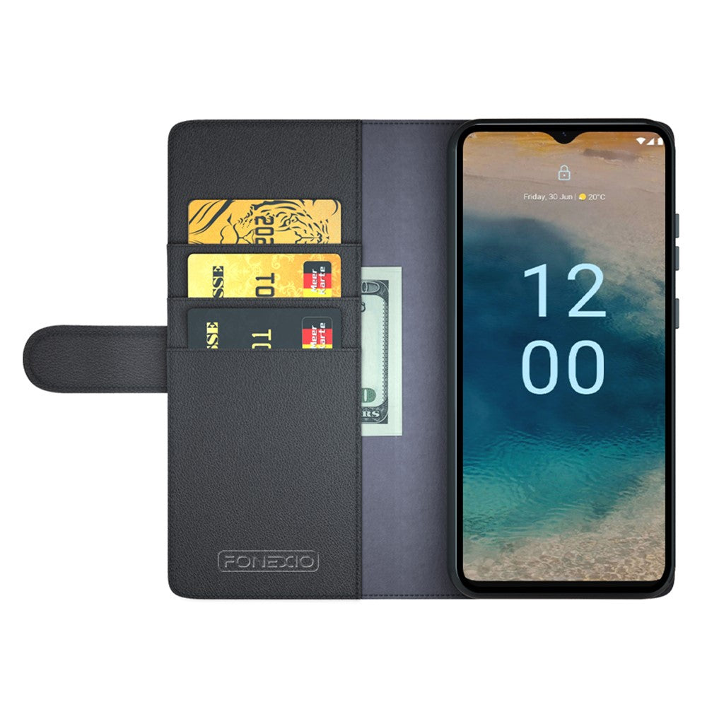 Genuine leather case with credit card slots for Nokia G22 - Black
