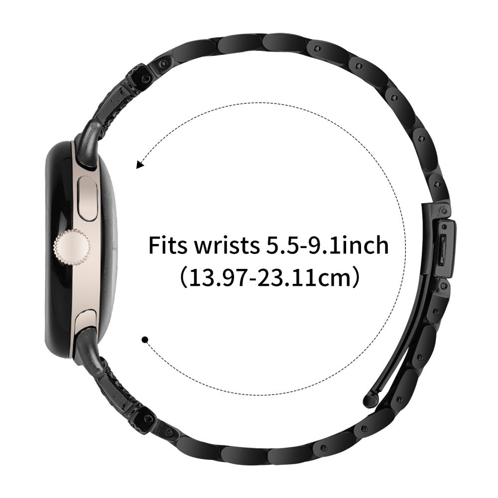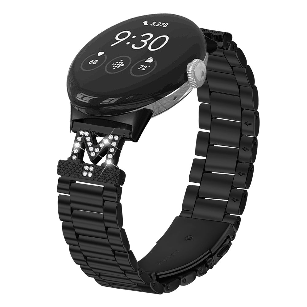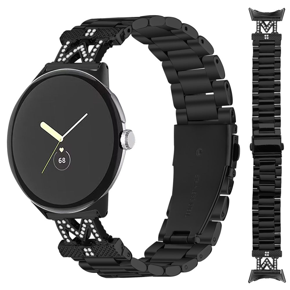 Google Pixel Watch 2 / Pixel Watch Watch Strap Rhinestones Decor 3 Beads Stainless Steel Watch Band - Black
