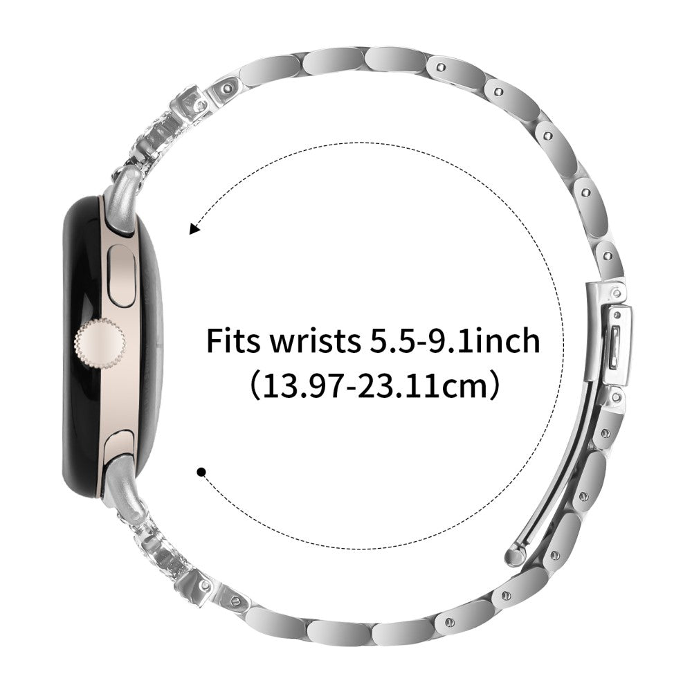 Google Pixel Watch 2 / Watch Stainless Steel Strap Crown Shape Rhinestone Decor Silver Watch Band