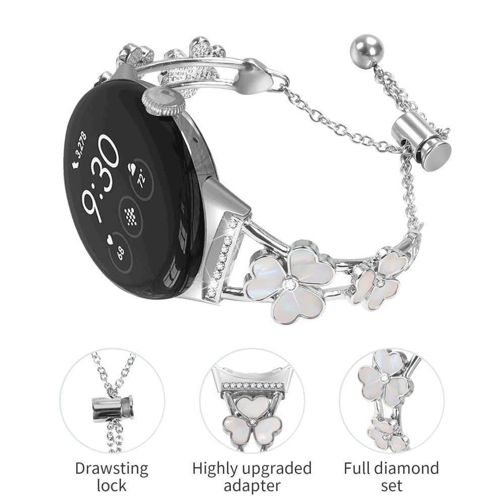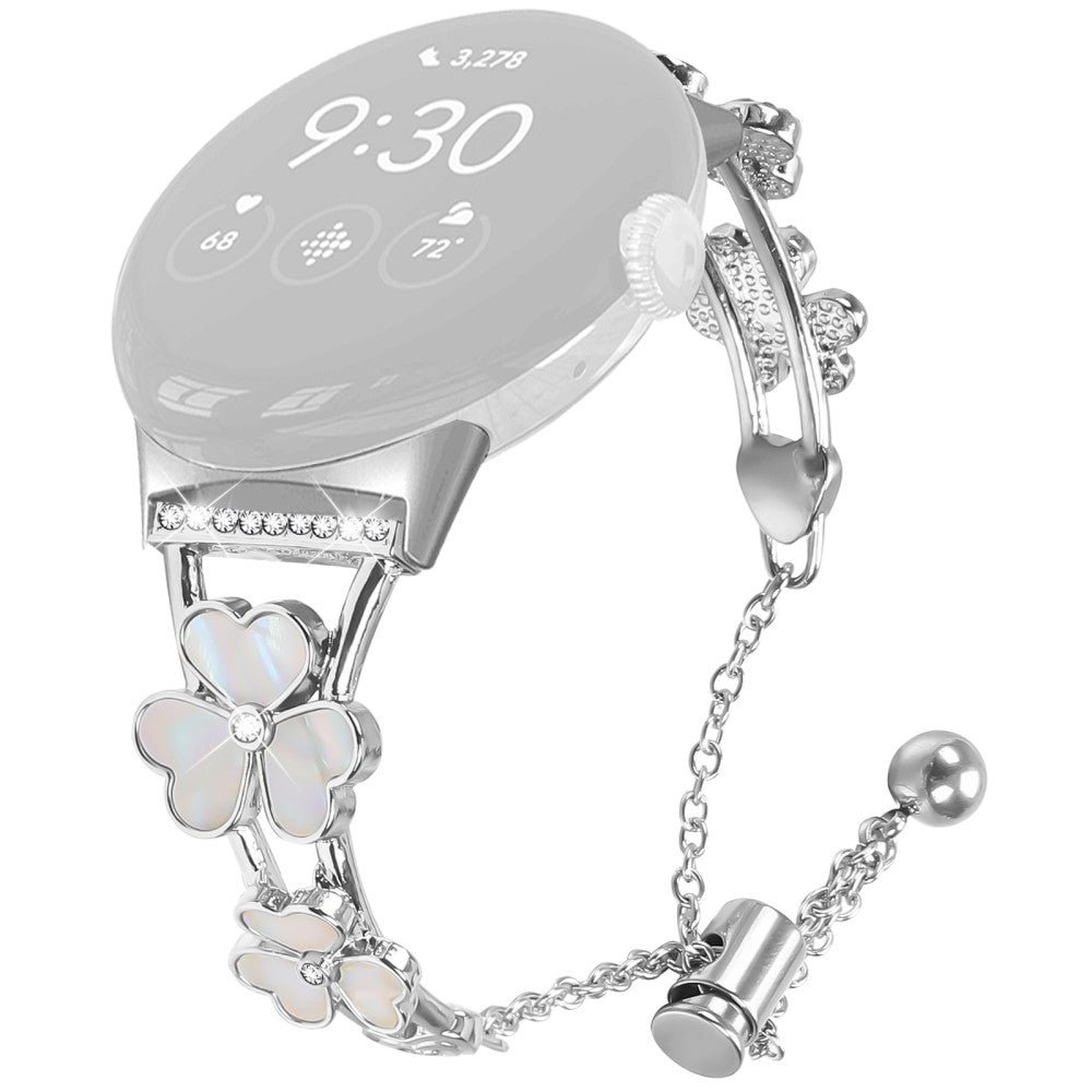 Google Pixel Watch / Watch 2 Watchband Heart Clover Decor Silver Zinc Alloy Metal Strap