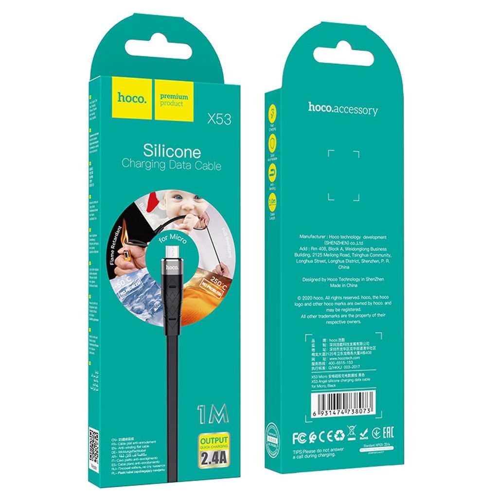 X53 Angel USB to Micro-USB silicone charging data cable, 1m, current up to 2.4A - Black