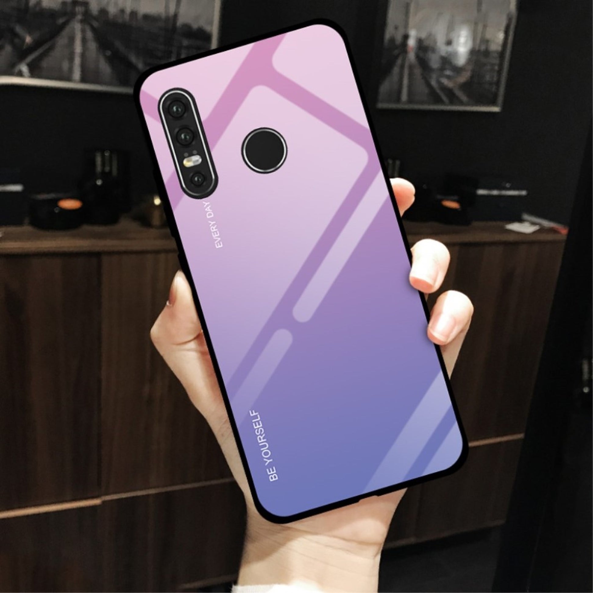 A Rose / Blue gradient in tempered glass TPU case that fits well on your Huawei P30 Lite. Makes your phone look cool in stunning gradient hues and protects from scratches and falls.