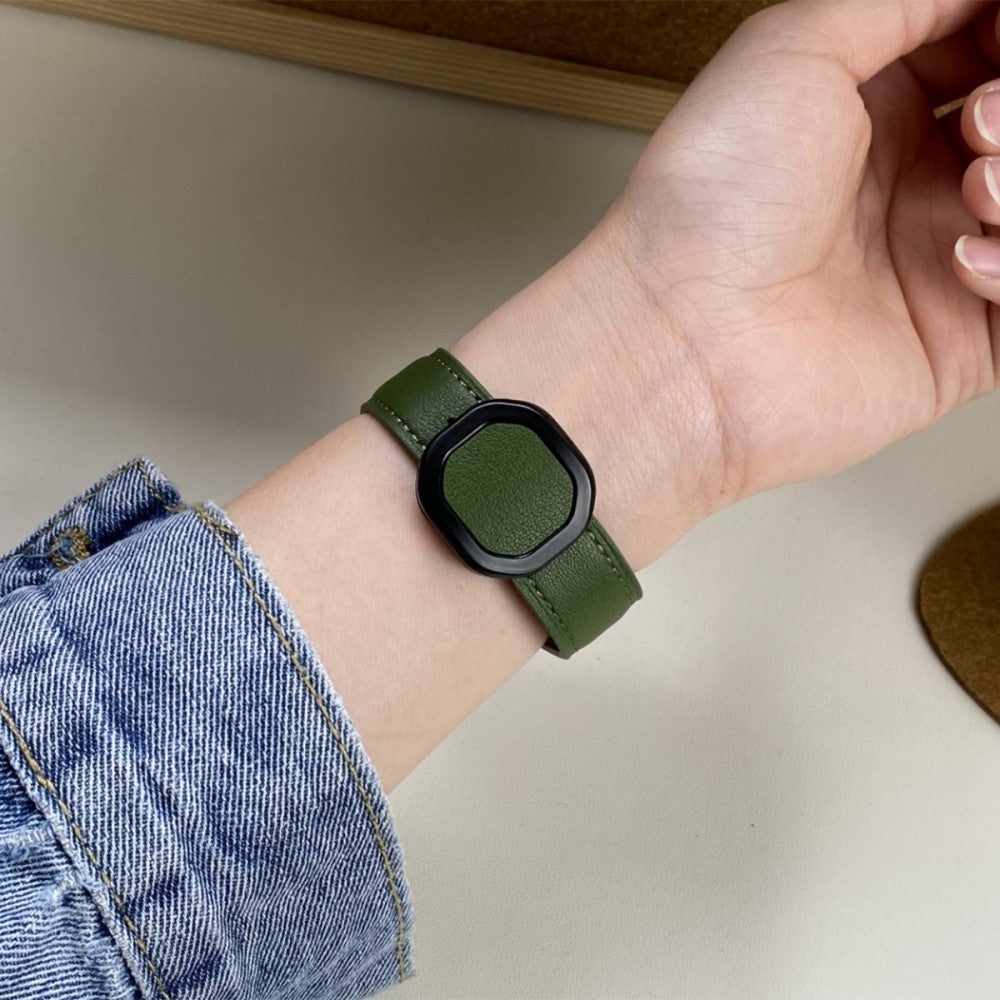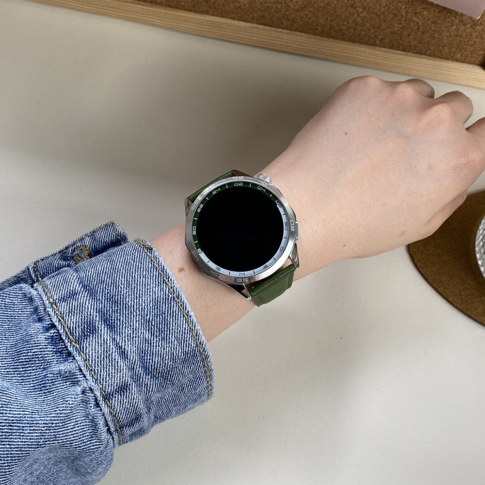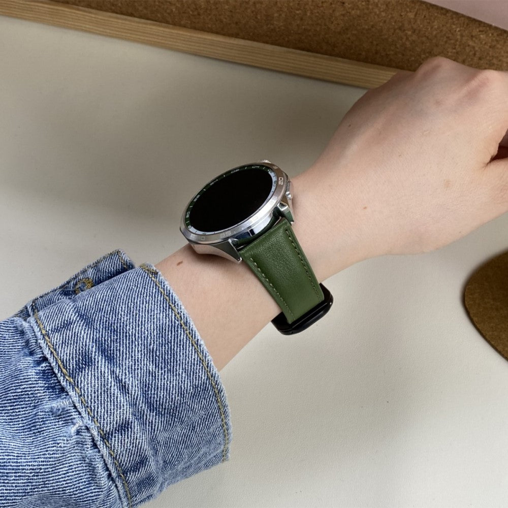 Huawei / Samsung / Garmin Watch Band 20mm Magnetic Genuine Cow Leather Wrist Strap - Army Green