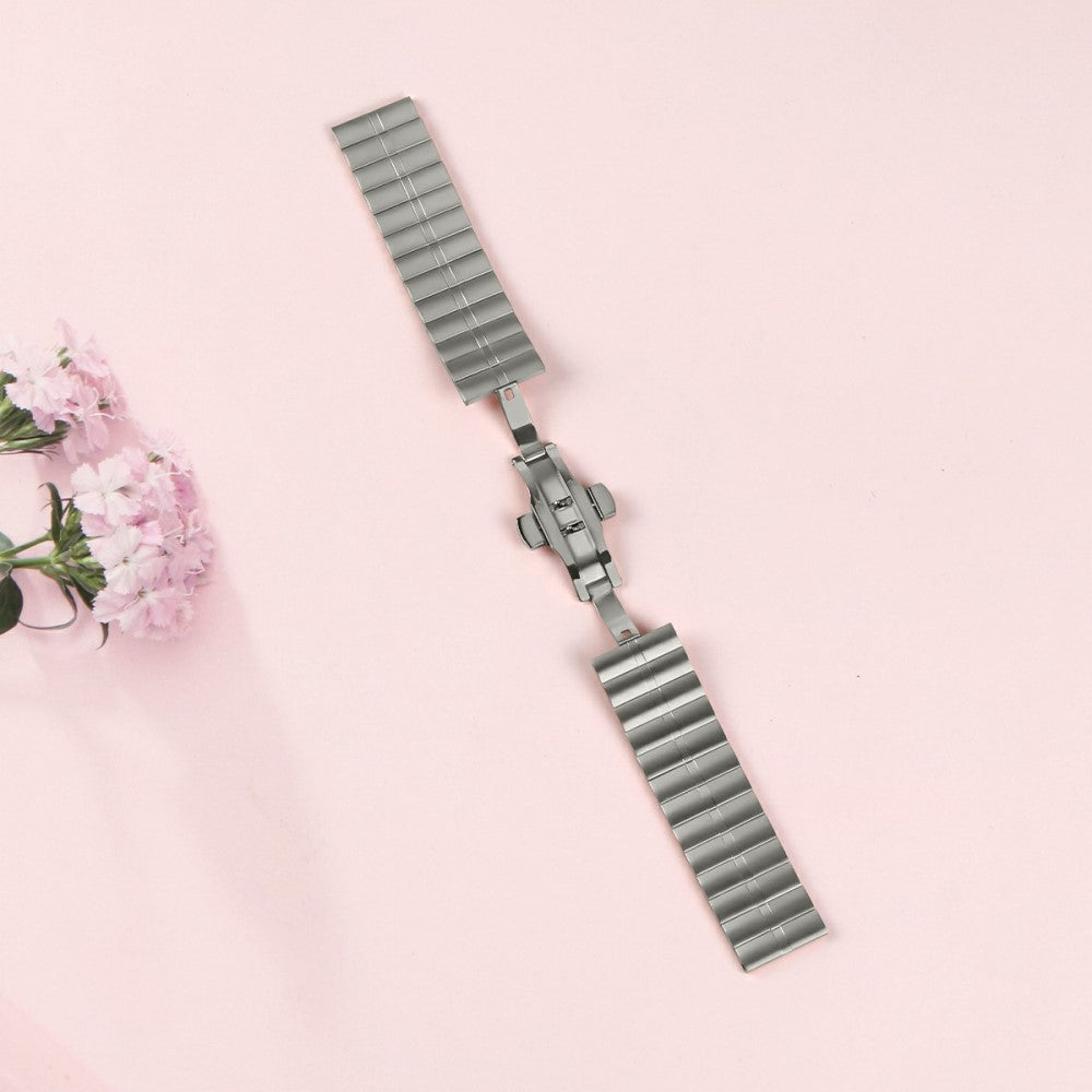This high-quality watch strap replacement is crafted from durable stainless steel, ensuring longevity and reliability. The butterfly buckle allows for easy wear and removal, making it convenient for any occasion. Its versatile design is suitable for both business and casual attire, adding a touch of style to your watch. Adjusting the strap length is a simple task with the use of a tool (sold separately). Upgrade your timepiece with this sleek and practical accessory, designed to withstand daily wear and tear. Say farewell to your old, worn-out strap and welcome a fresh new look for your watch.