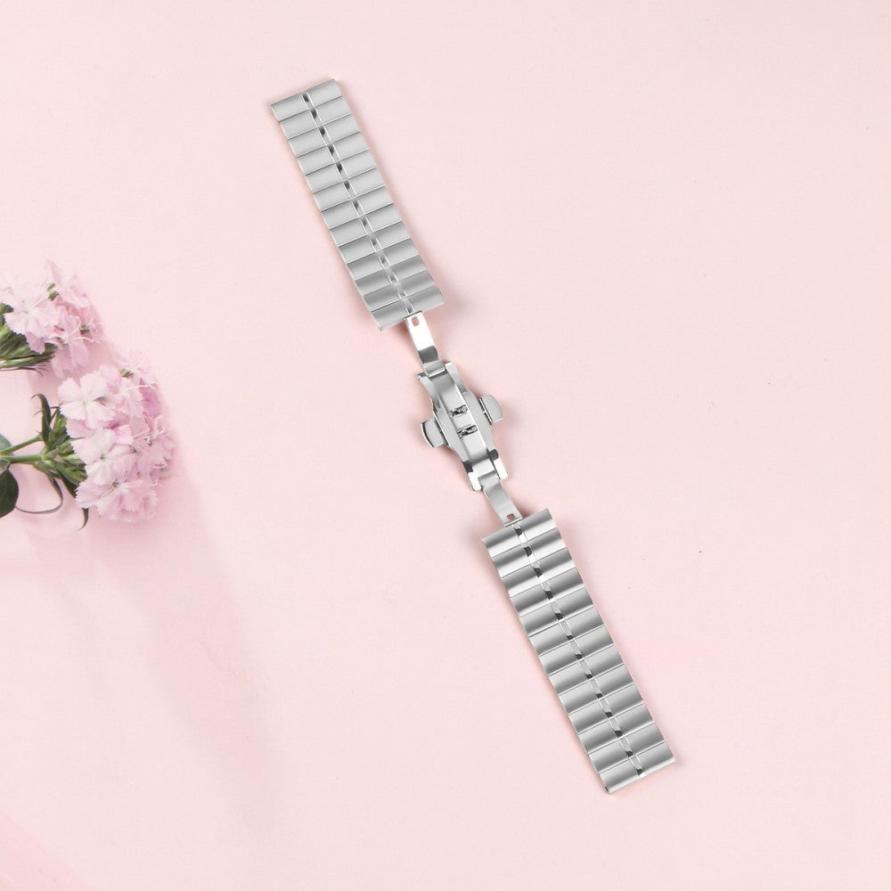 Transform your smartwatch with this elegant stainless steel replacement strap. Carefully crafted from high-quality materials, this sturdy strap is equipped with a convenient buckle for effortless wear. Its impeccable craftsmanship and modern design make it suitable for any occasion, whether you're out for a casual day or attending a formal event. With a wrist size range of 5.1-8.3", this strap ensures a customized fit for everyone. Upgrade from your old, worn-out strap to this sophisticated and versatile option. Whether you're dressing up for a special event or simply going about your day, this strap will add a touch of refinement to your outfit. Make a statement with this perfect watch strap replacement.