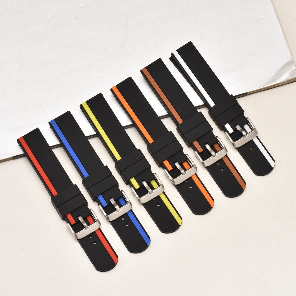 Crafted from high-quality silicone, this watch strap is not only comfortable to wear but also easy to match with your daily outfit. The material is skin-friendly and hypoallergenic, ensuring no irritation. The watch buckle is made from premium materials, guaranteeing durability for long-lasting wear.Available in a variety of colors, you can choose the perfect one to complement your style. The dual-color and multiple holes design make it easy to adjust the size for a customized fit. This strap is an ideal replacement for your old or broken one, suitable for work, leisure, or any daily occasion. Whether you're a man or a woman, this versatile watch strap is perfect for adding a stylish touch to your ensemble.