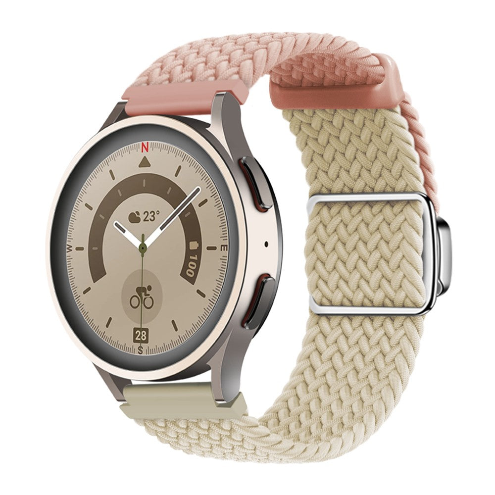 Huawei Watch GT 3 42mm / GT 3 Pro 43mm Universal 20mm Woven Strap Magnetic Silver Buckle Watch Band - Pink+Starlight