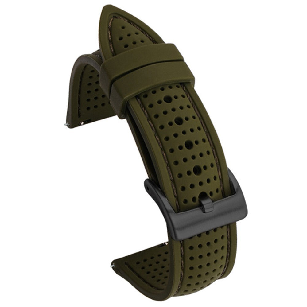 Huawei Watch GT 3 42mm / GT 3 Pro 43mm Watch band 20mm Silicone Wrist Strap - Black Buckle / Army Green+Green Thread