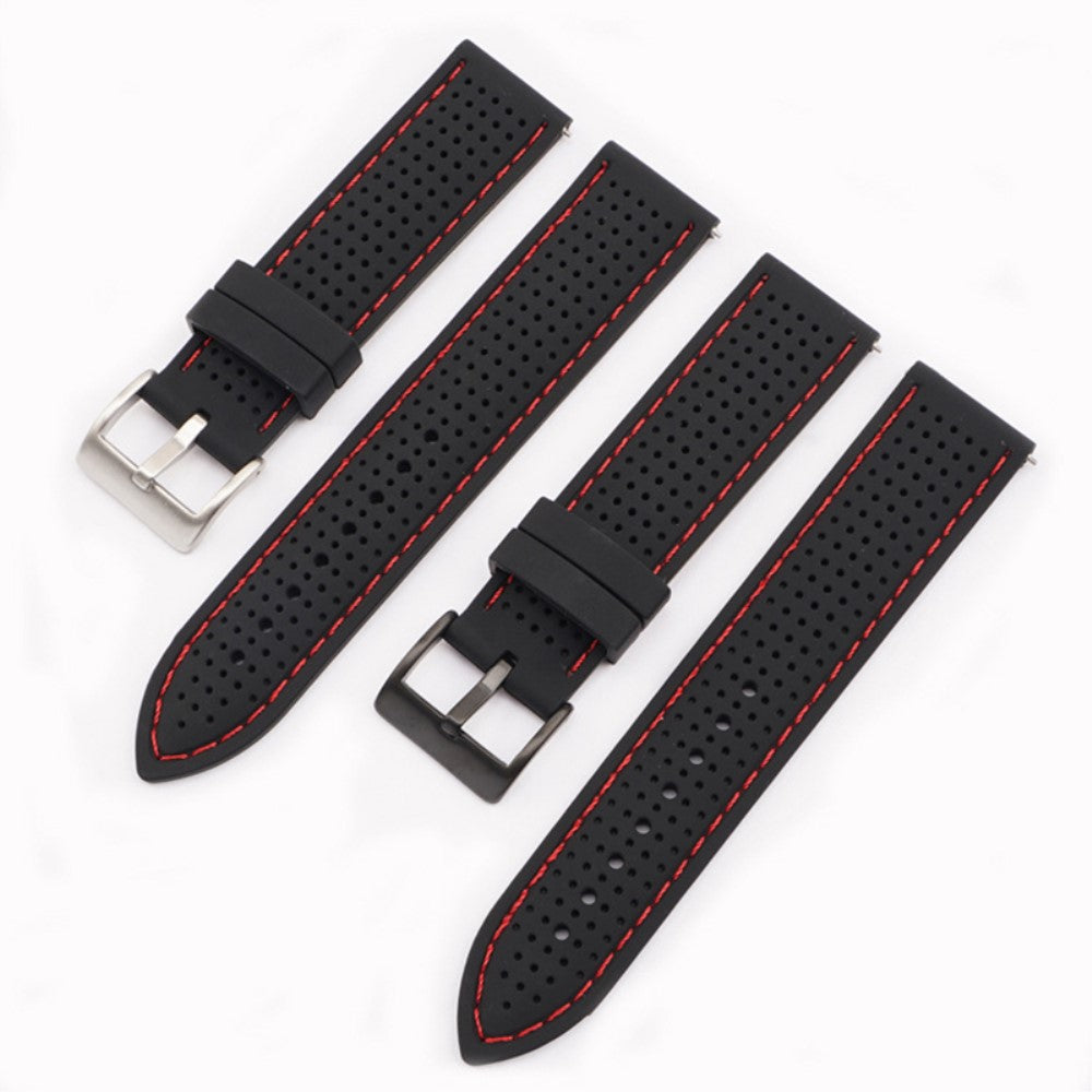Crafted from premium silicone, this watch strap offers both comfort and style. The unique breathable mesh structure allows for optimal airflow, keeping your skin cool and dry throughout the day. With a convenient multiple holes design, you can easily adjust the size for a perfect fit. Available in a range of colors, you can choose the one that best suits your personal style. Whether for work or leisure, this strap is a versatile accessory for any occasion. Say goodbye to your old, worn-out strap and upgrade to this high-quality replacement. Elevate your daily outfit with this sleek and functional watch strap that is suitable for both men and women.