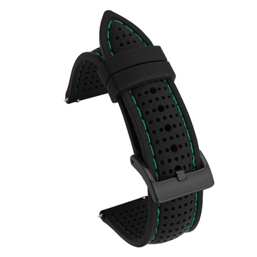 Huawei Watch GT 3 42mm / GT 3 Pro 43mm Watch band 20mm Silicone Wrist Strap - Black Buckle / Black+Green Thread