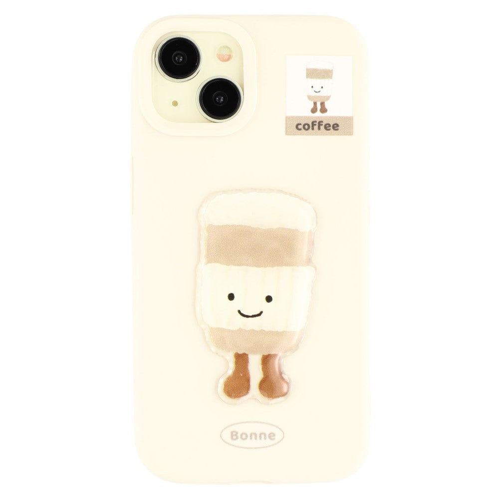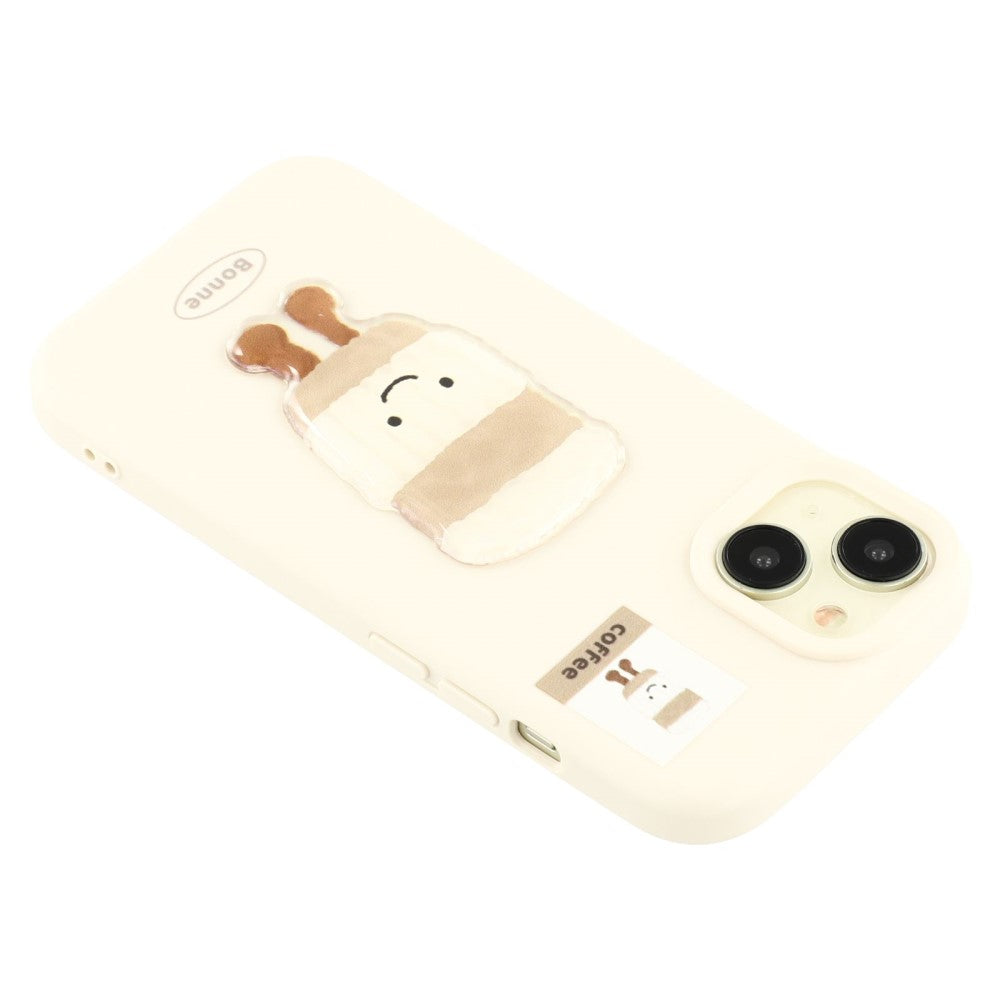 iPhone 14 Case Pattern Printed 2.0mm Flexible Phone Cover with 3D Accessories Decor - White + Coffee