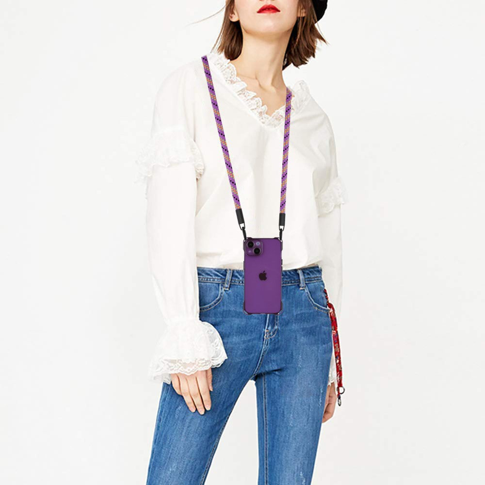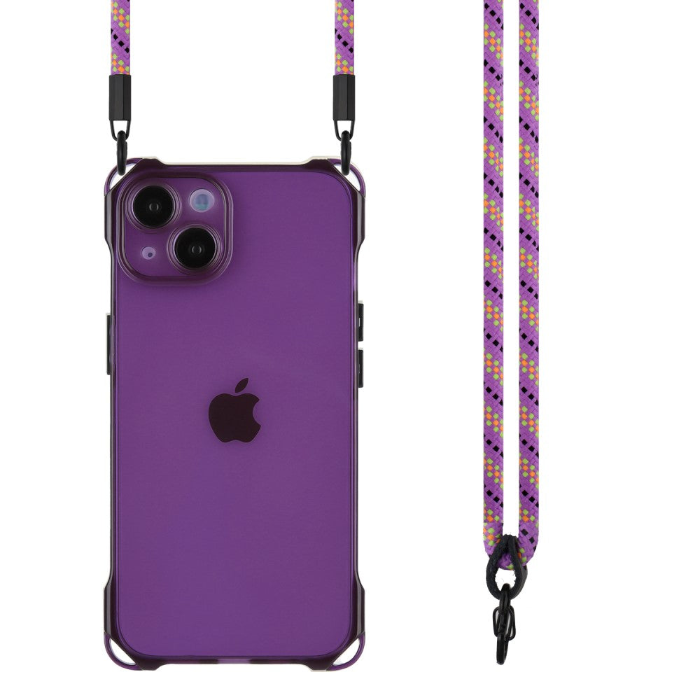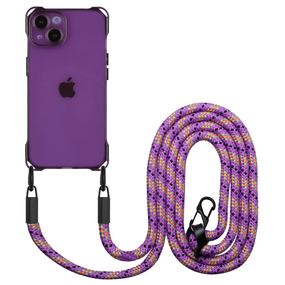 iPhone 14 Transparent TPU Case with Drop Protection and Hanging Rope - Purple