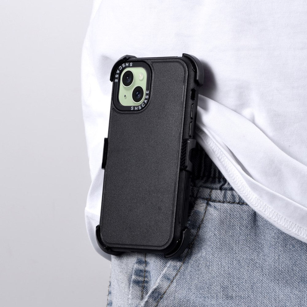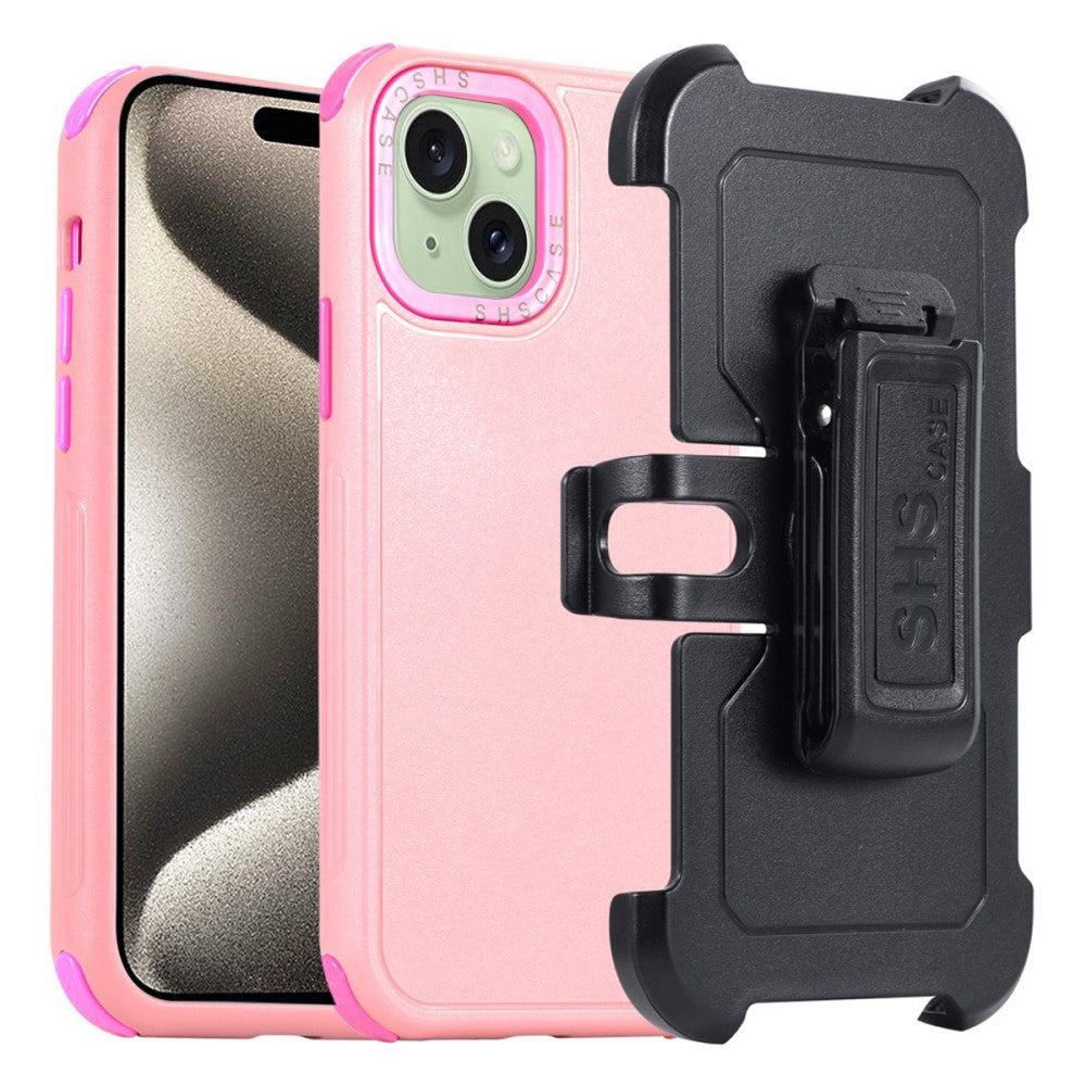 iPhone 15 Plus Dual Layer Belt Clip Holster Case - Pink+Rose