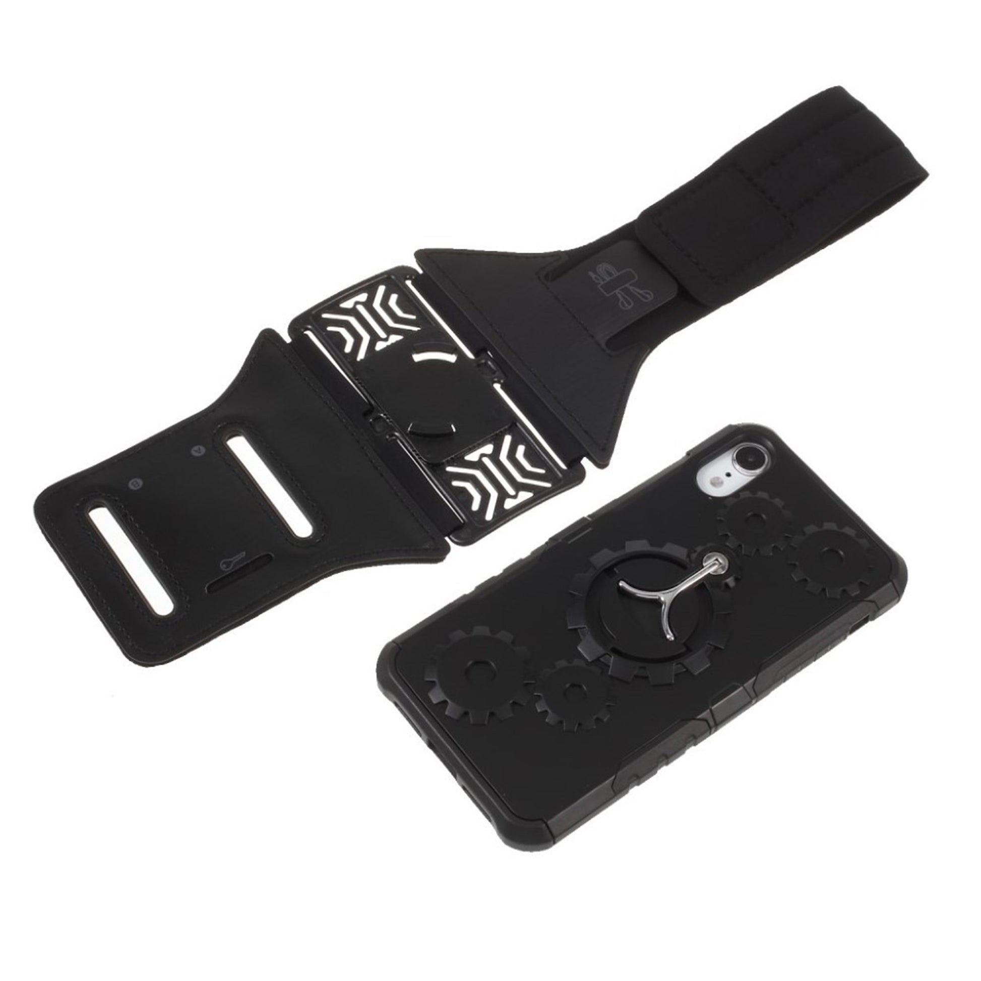 A cool black themed gear motif TPU hybrid case for your iPhone Xr. Provides durable protection against scratches and falls. This is the perfect case when you're on jogging with its armband accessory.