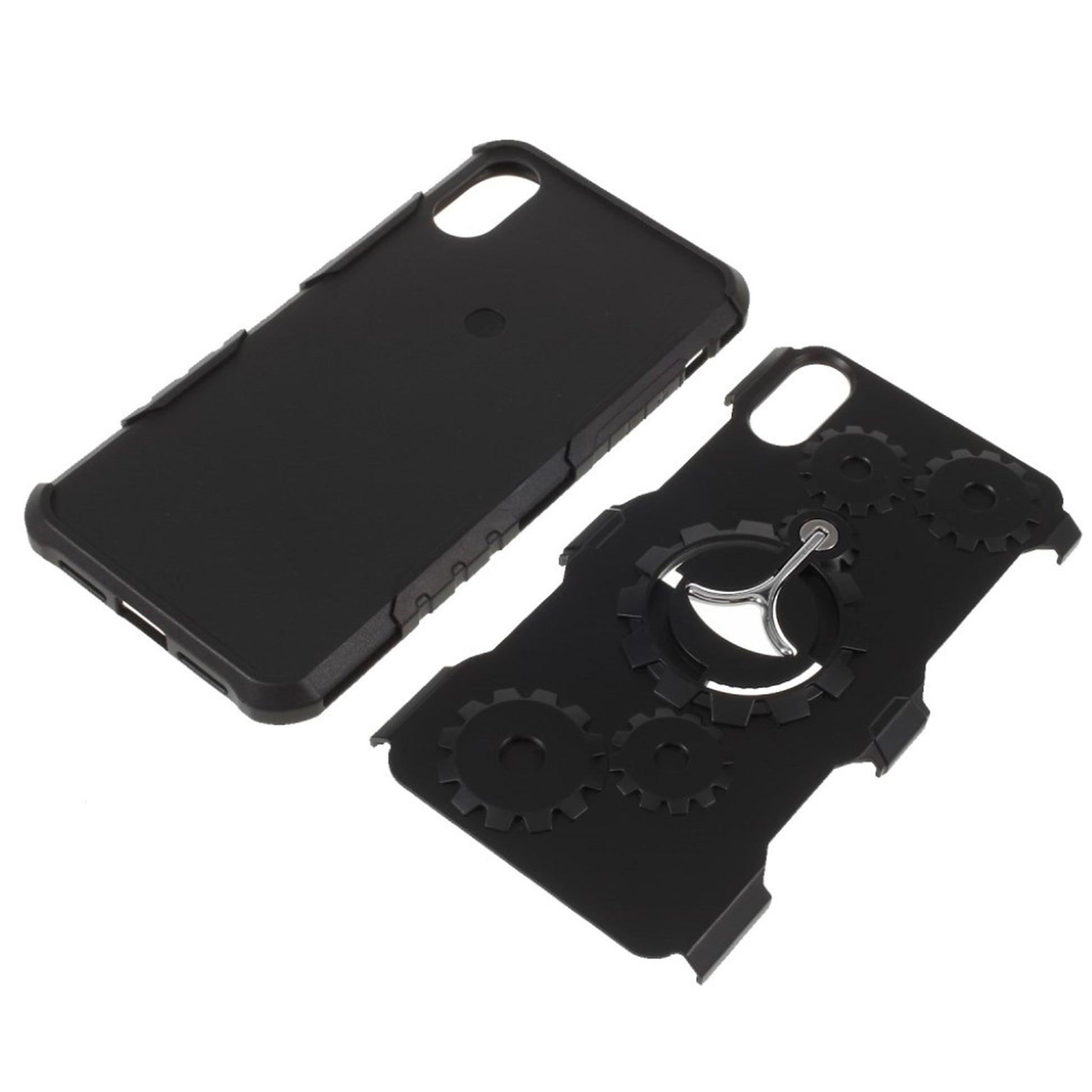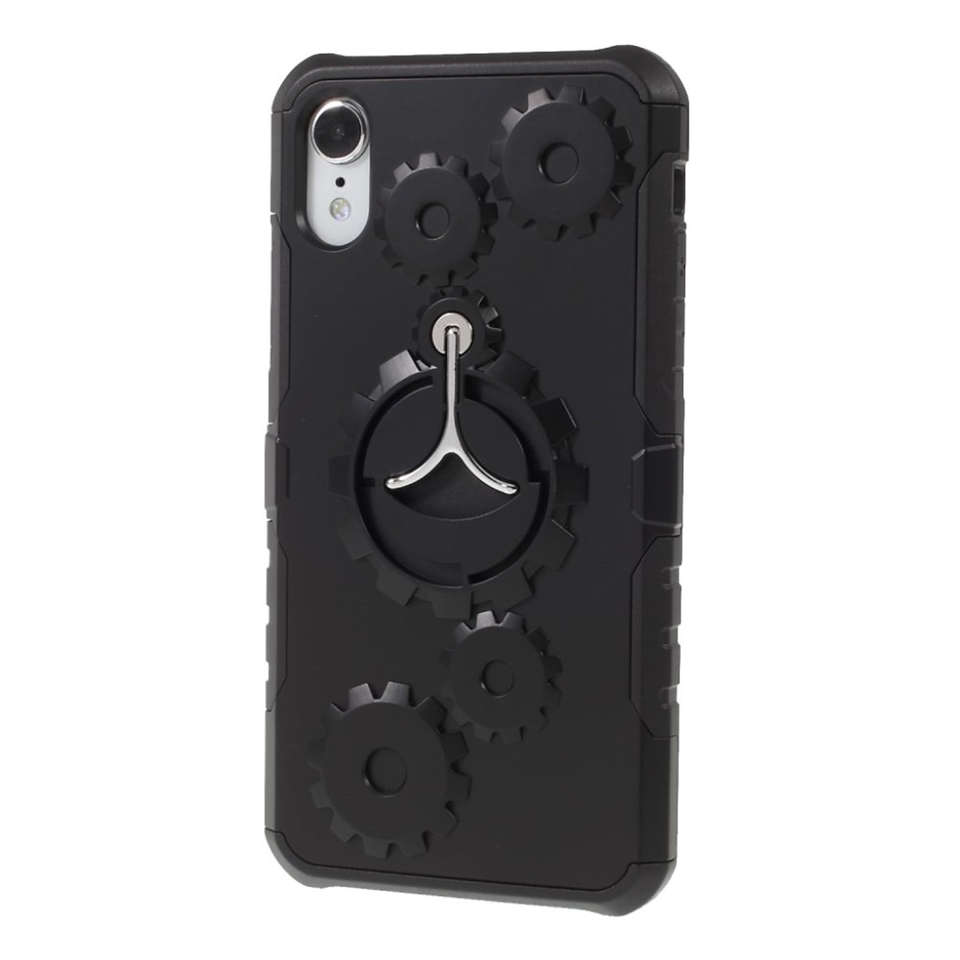 iPhone Xr gear pattern kickstand hybrid case - Black