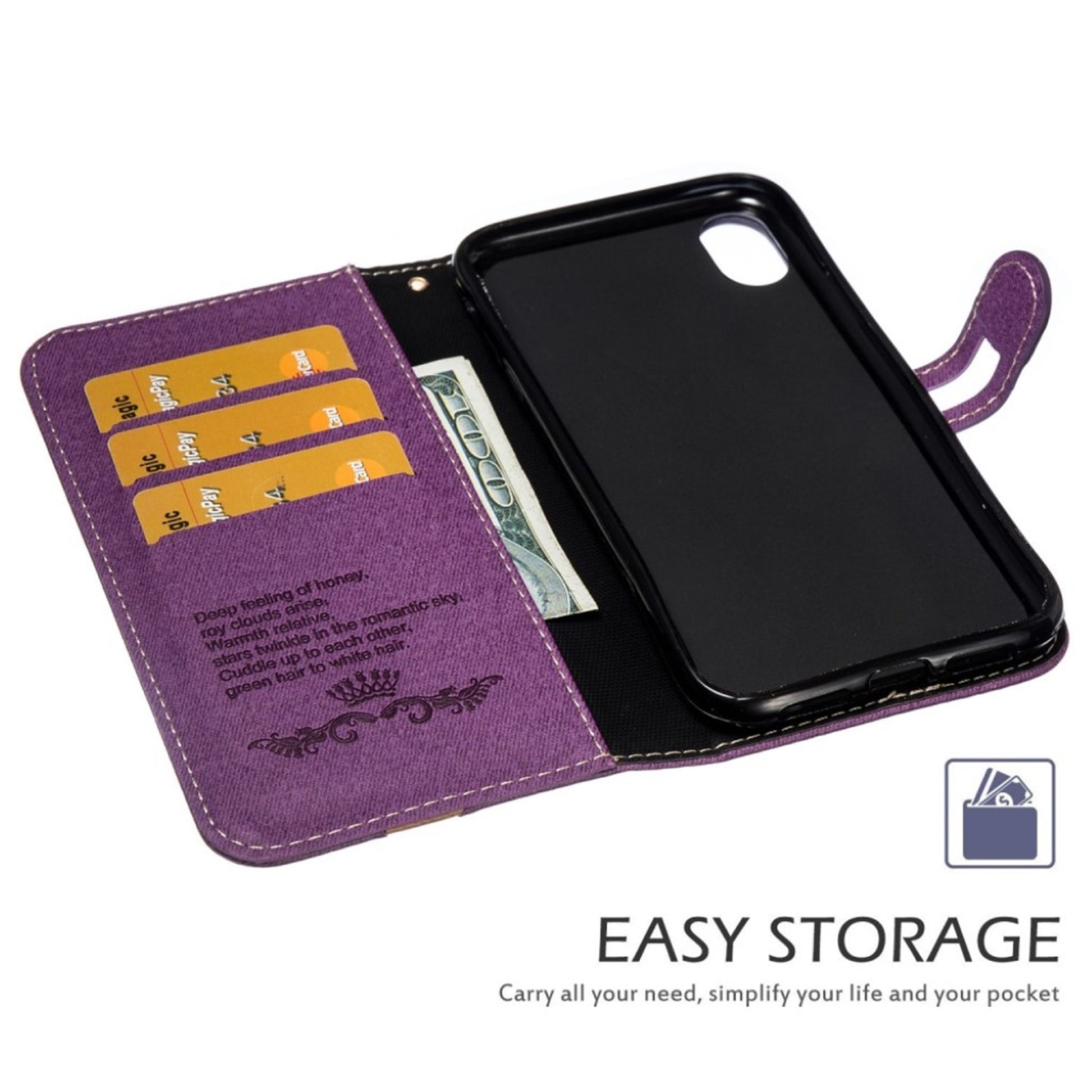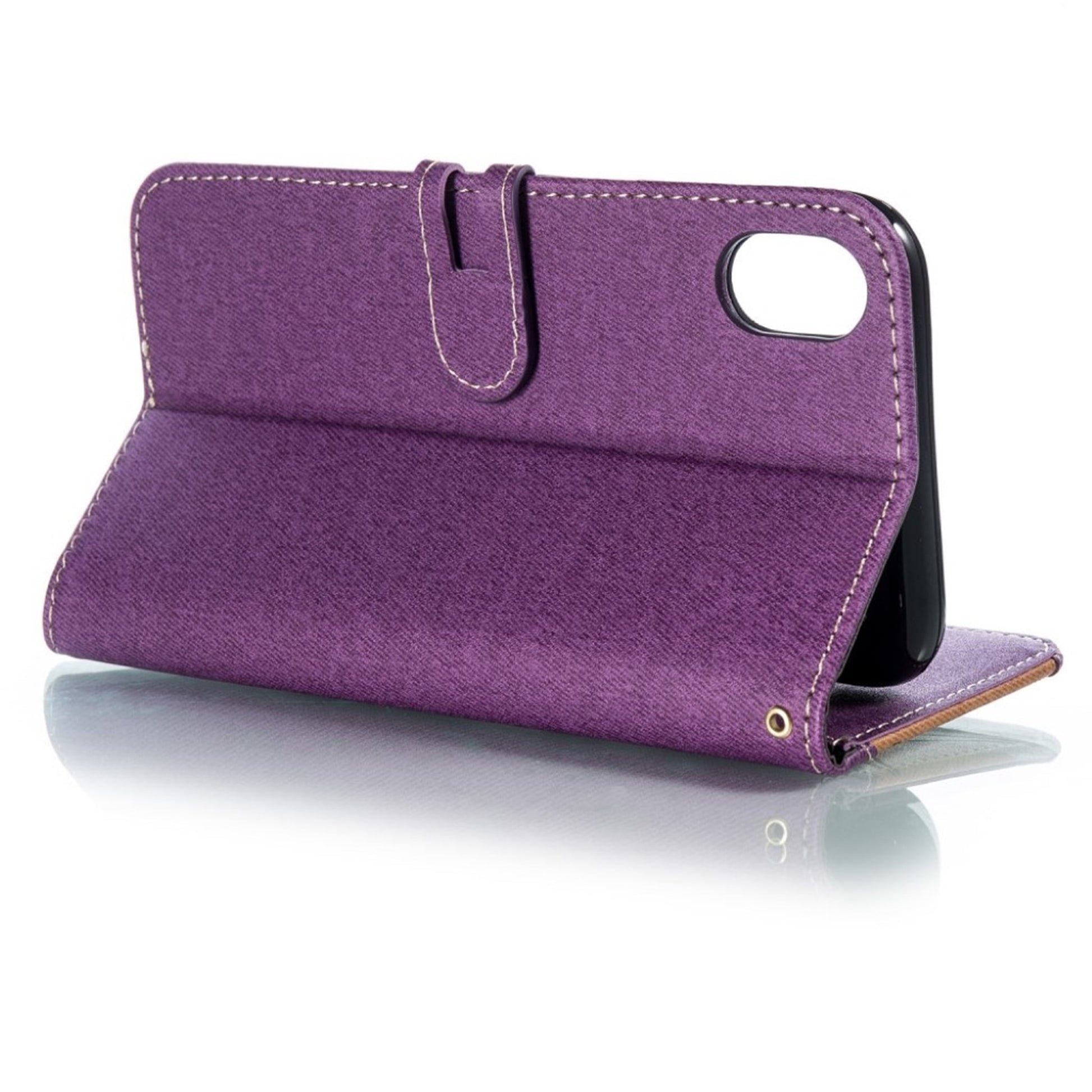 iPhone Xr imprint men tie décor leather flip case - Purple