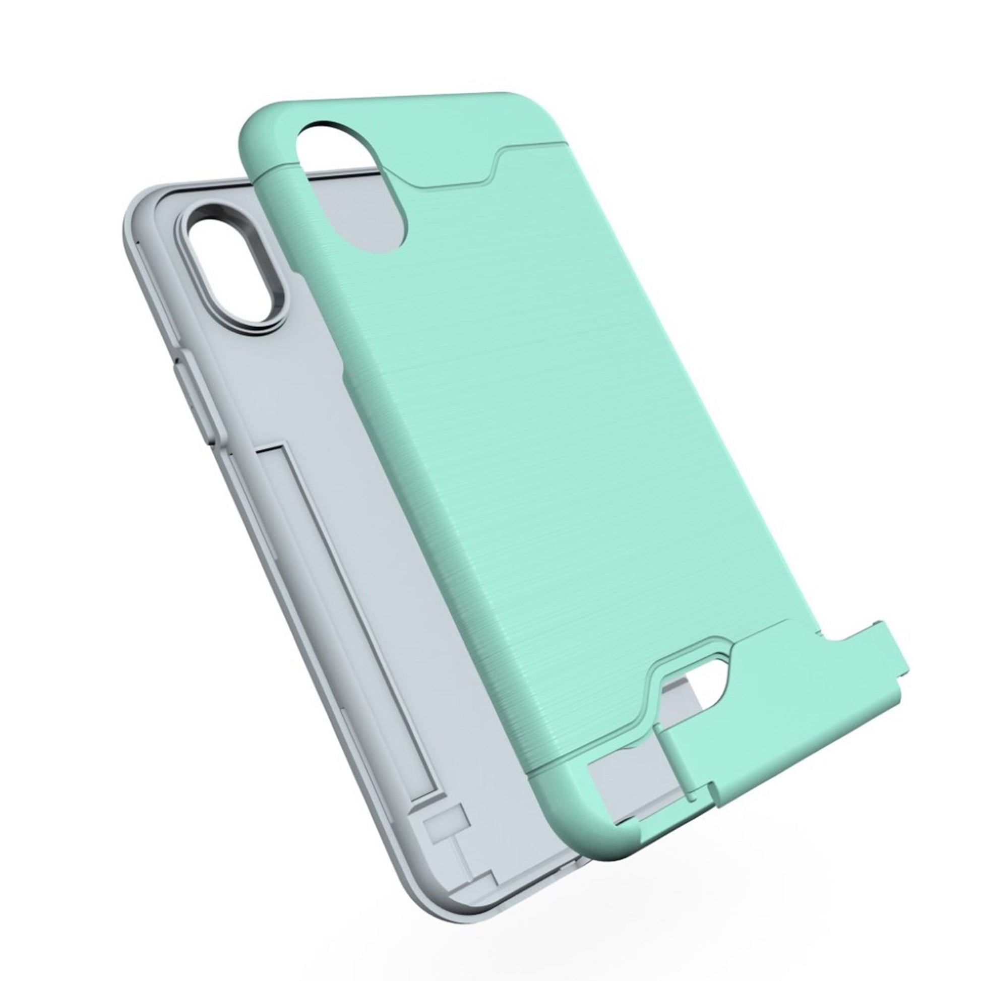 A cyan brushed TPU case for your iPhone Xr. Protects your phone against scratches and falls.