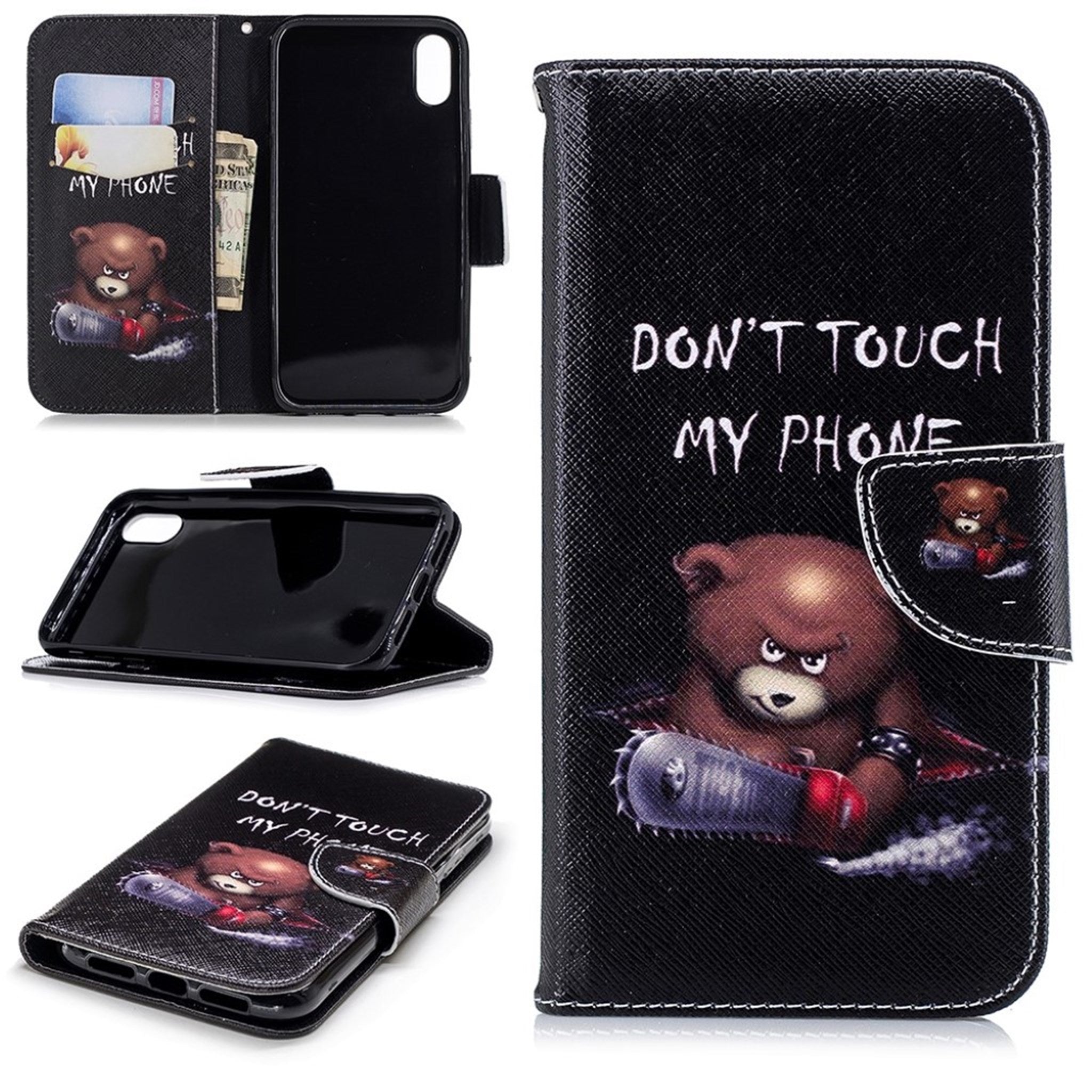 iPhone Xr pattern printing leather flip case - Bear And Its Warnings