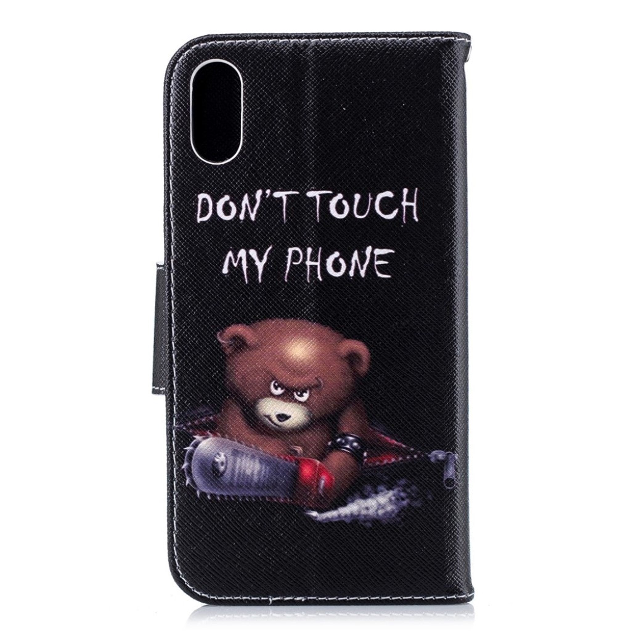A Bear And Its Warnings pattern printing folio PU leather flip case for your iPhone Xr. Protects your phone against scratches and falls.