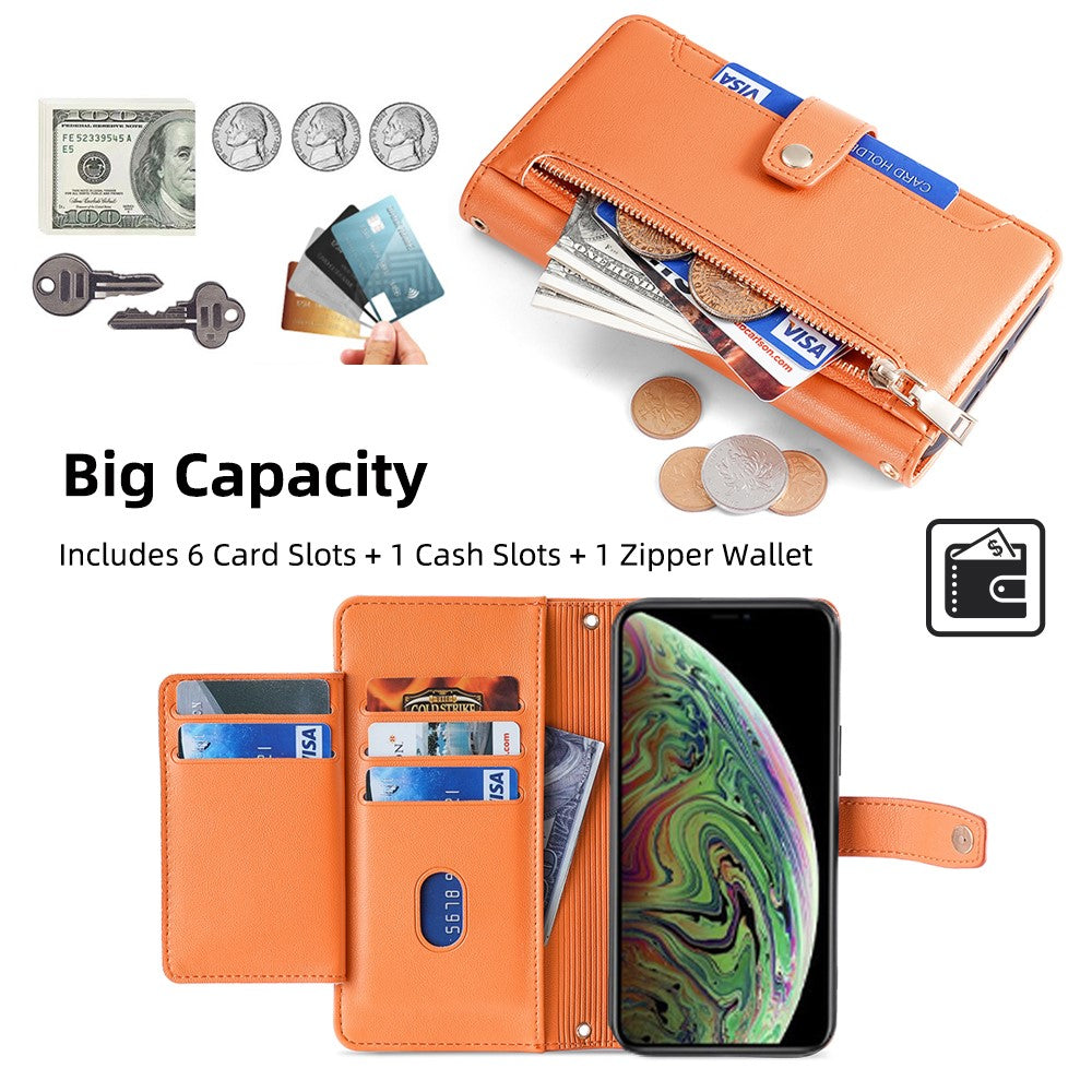 iPhone Xs / iPhone X vegan leather wallet zipper case - Orange
