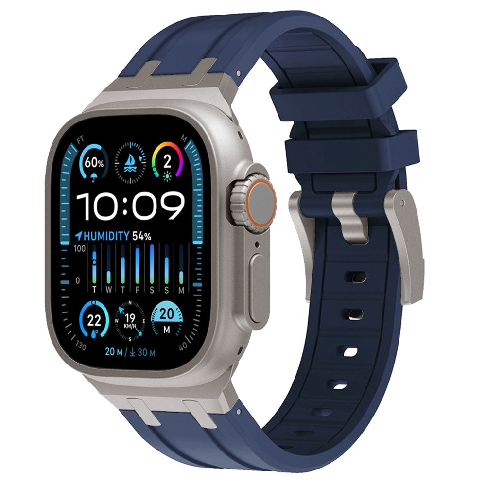 KALEBO For Apple Watch Ultra 2 Ultra 49mm / 9 8 7 45mm / 6 5 4 SE (2023) SE (2022) SE 44mm / 3 2 1 42mm Liquid Silicone Strap - Titanium+Blue