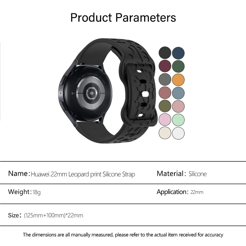 Elevate your smartwatch experience with this stylish strap, designed to make a statement. The eye-catching leopard pattern on a premium silicone base not only captures attention but also adds a contemporary flair to your wrist. Enjoy the convenience of quick fit-swap technology, allowing you to effortlessly change your look in seconds, perfect for those who embrace versatility. Crafted from high-quality silicone, this strap provides exceptional durability, flexibility, and a comfortable fit for daily use, whether you’re at work or exploring the outdoors. The secure butterfly buckle ensures that your watch fits snugly while enhancing its sophisticated appearance. Designed with comfort in mind, the soft silicone material is gentle on the skin, making it ideal for all-day wear. Personalize your look and express your unique style with this versatile strap.