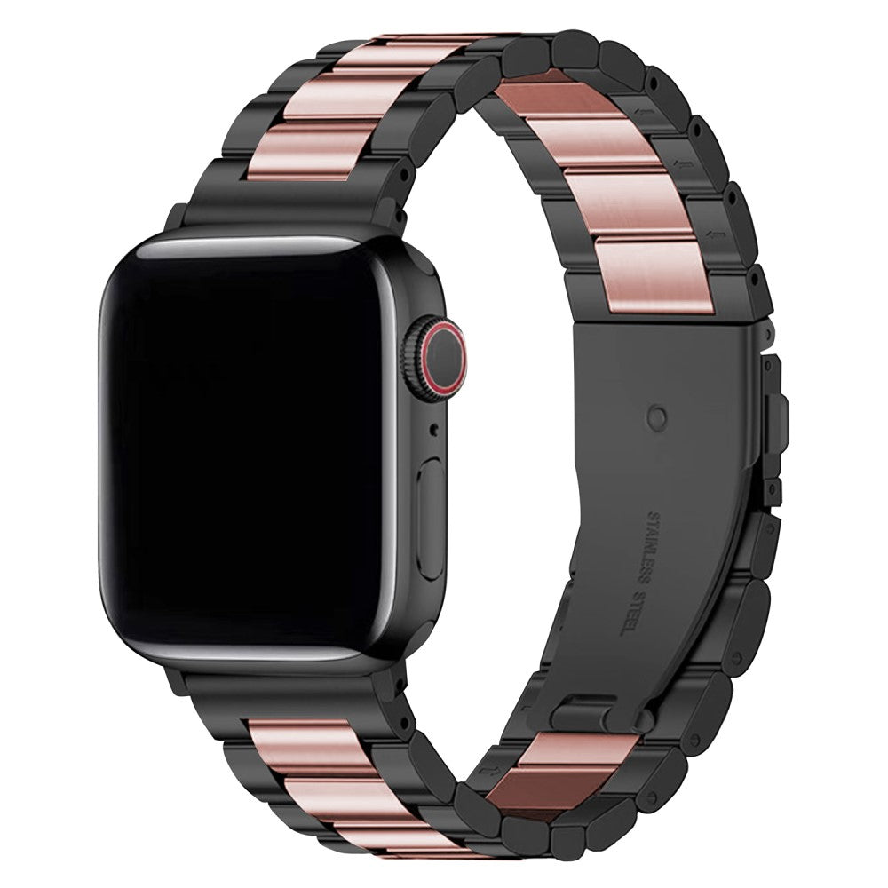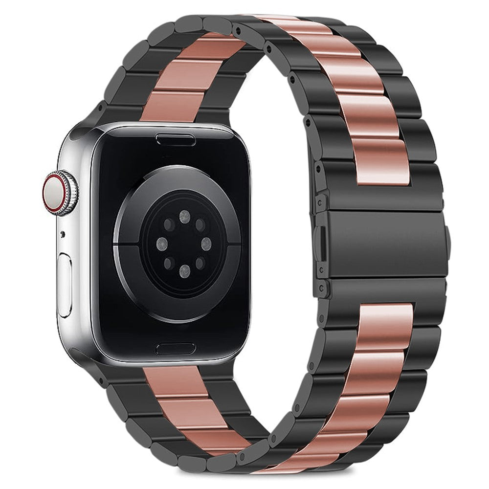 KALEBOL For Apple Watch Ultra 2 Ultra 49mm / 9 8 7 45mm / 6 5 4 SE (2022) SE (2023) SE 44mm / 3 2 1 42mm Stainless Steel Watch Strap - Black+Rose