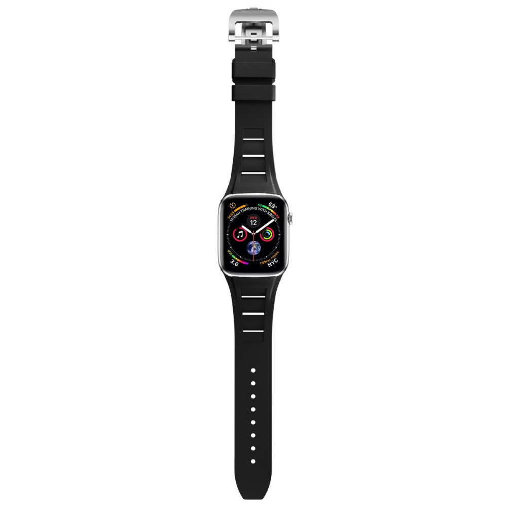 KALEBOL For Apple Watch Ultra 2 Ultra 49mm/Series 9 8 7 45mm/ SE (2023) SE (2022) SE 6 5 4 44mm/ 3 2 1 42mm Watch Band - Black / Silver Buckle