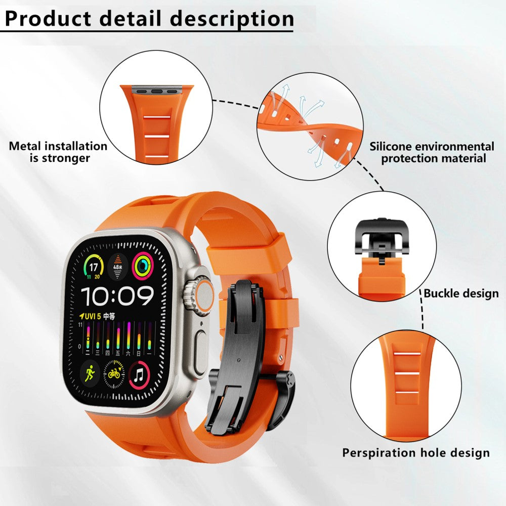 KALEBOL For Apple Watch Ultra 2 Ultra 49mm/Series 9 8 7 45mm/ SE (2023) SE (2022) SE 6 5 4 44mm/ 3 2 1 42mm Watch Band - Orange / Black Buckle