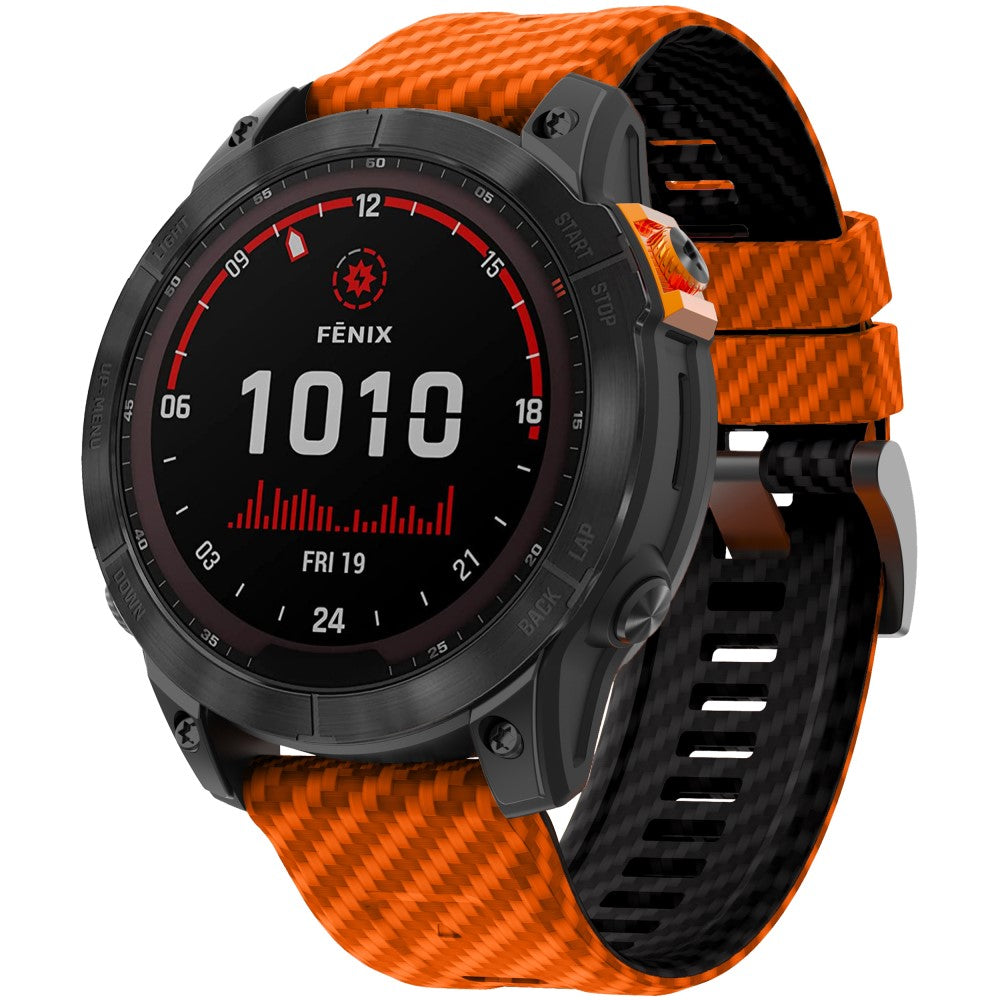 KALEBOL Garmin Fenix Series 5X - 6X - 7X - 26mm Silicone Watch Band Carbon Fiber Texture Strap - Orange+Black