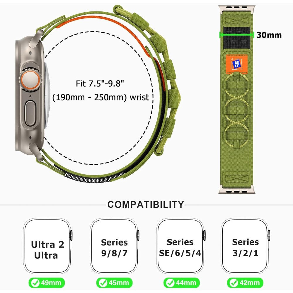 KALEBOL KLB-MSTNL-001 For Apple Watch Ultra 2 Ultra 49mm / 9 8 7 45mm / 6 5 4 SE (2023) SE (2022) SE 44mm / 3 2 1 42mm Nylon Watch Strap - Green