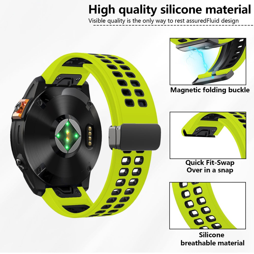 KALEBOL KLB-SSGJ-003 Garmin Fenix 7X / 7X Pro Watch Band QuickFit 26mm Magnetic Buckle Silicone Band - Black+Grey