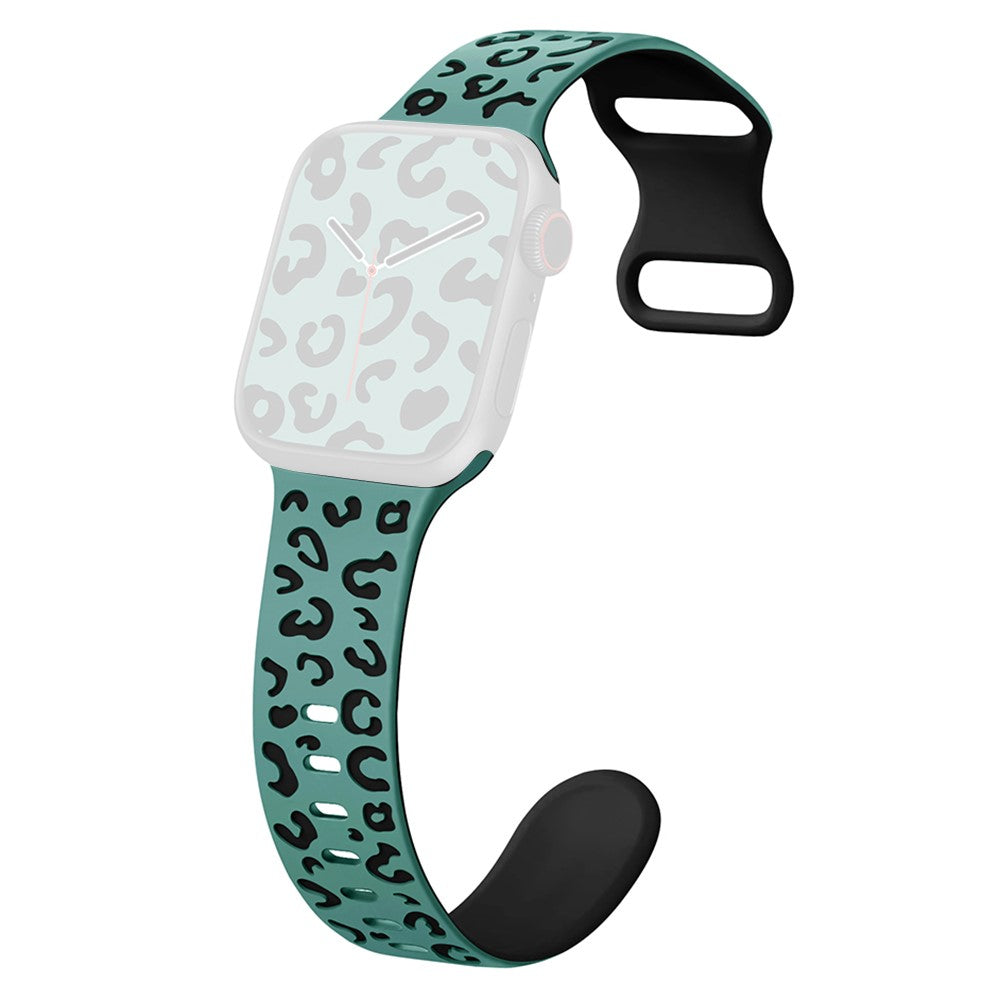 KALEBOL Leopard Silicone Band Apple Watch Series 10 42mm Dual Color Strap - Cactus Green + Black