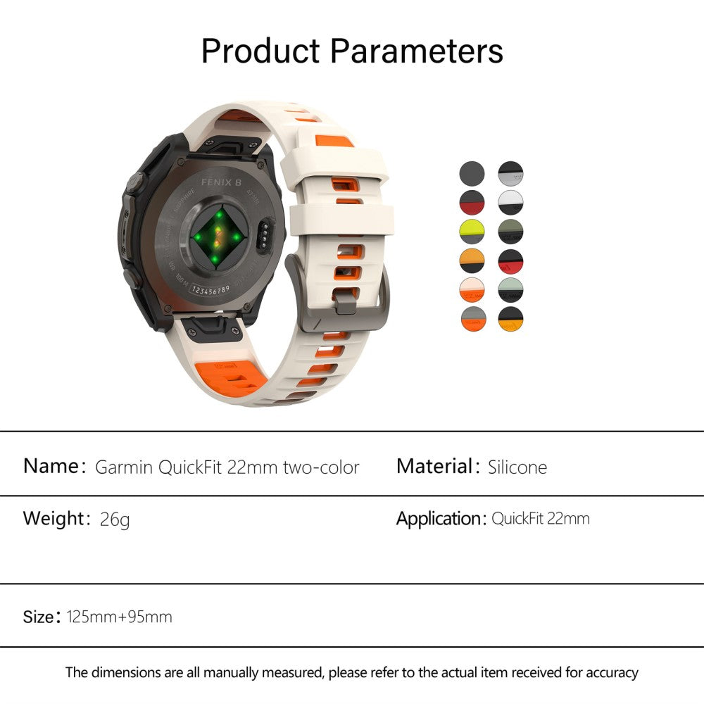 KALEBOL QuickFit 22mm Watch Strap Garmin Fenix 7 Pro / 7 / 6 Pro Dual Color Silicone Wrist Band - Lime+Grey