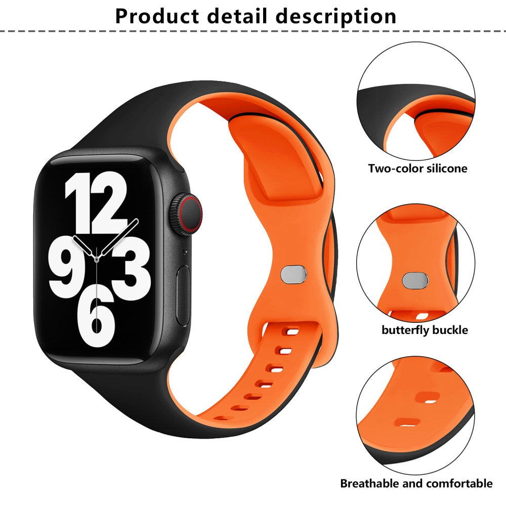 KALEBOL Silicone Strap Apple Watch Series 10 42mm Butterfly Buckle Watch Band - Berry Purple + Orange