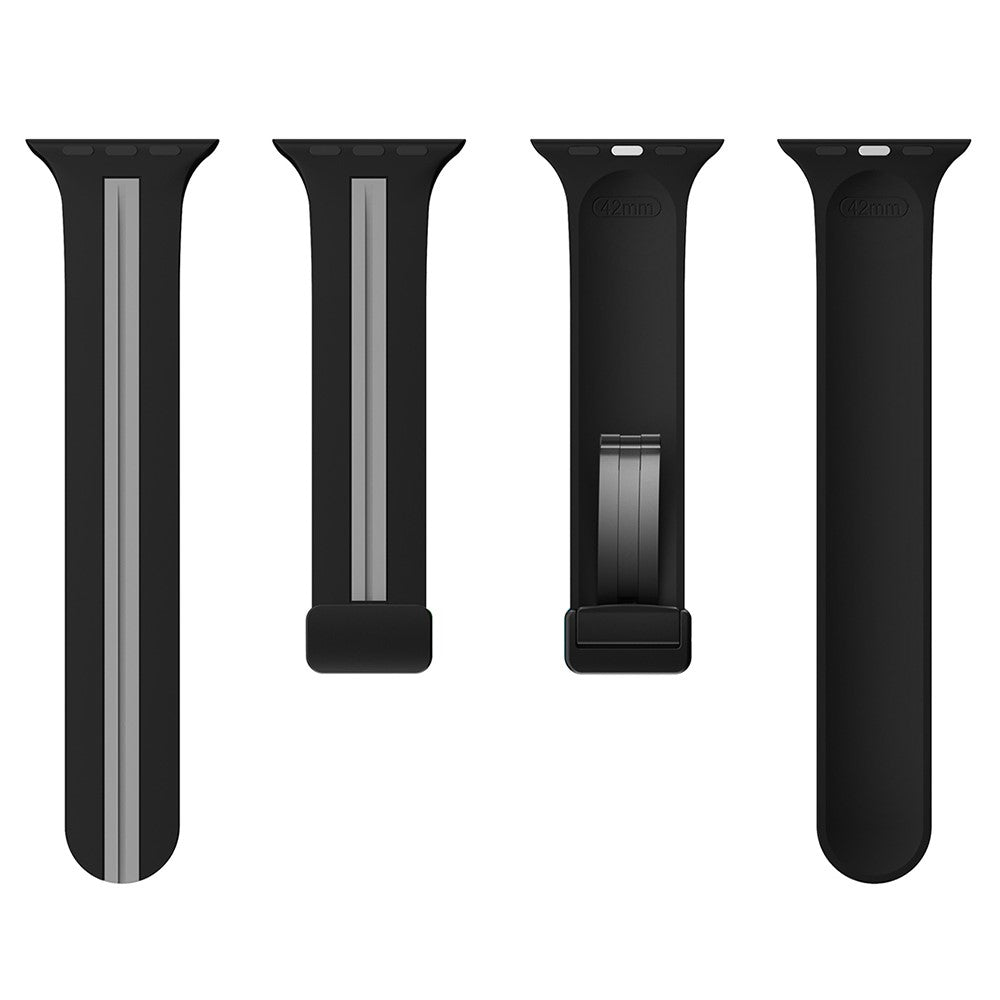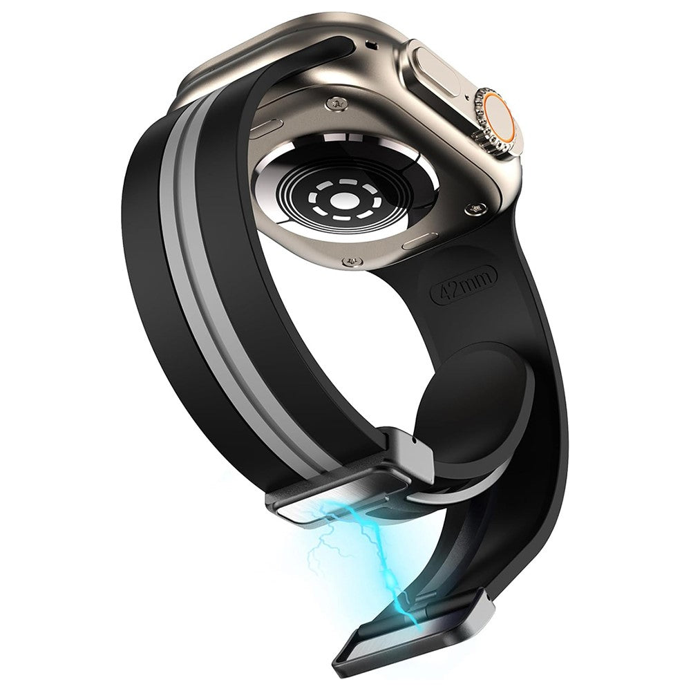 KALEBOL Striped Magnetic Silicone Strap Apple Watch Series 41mm - 40mm - 38mm Watch Band - Black+Grey