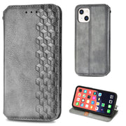 Leather case with a stylish rhombus imprint for iPhone 13 - Grey