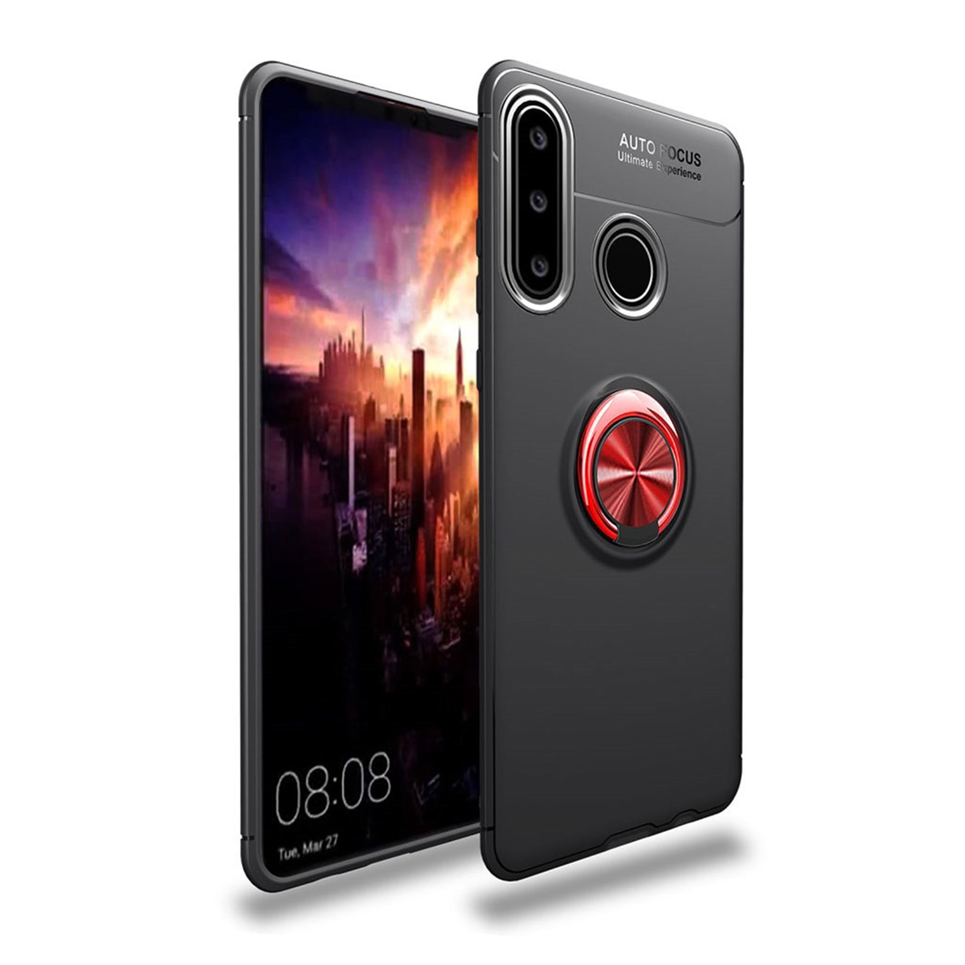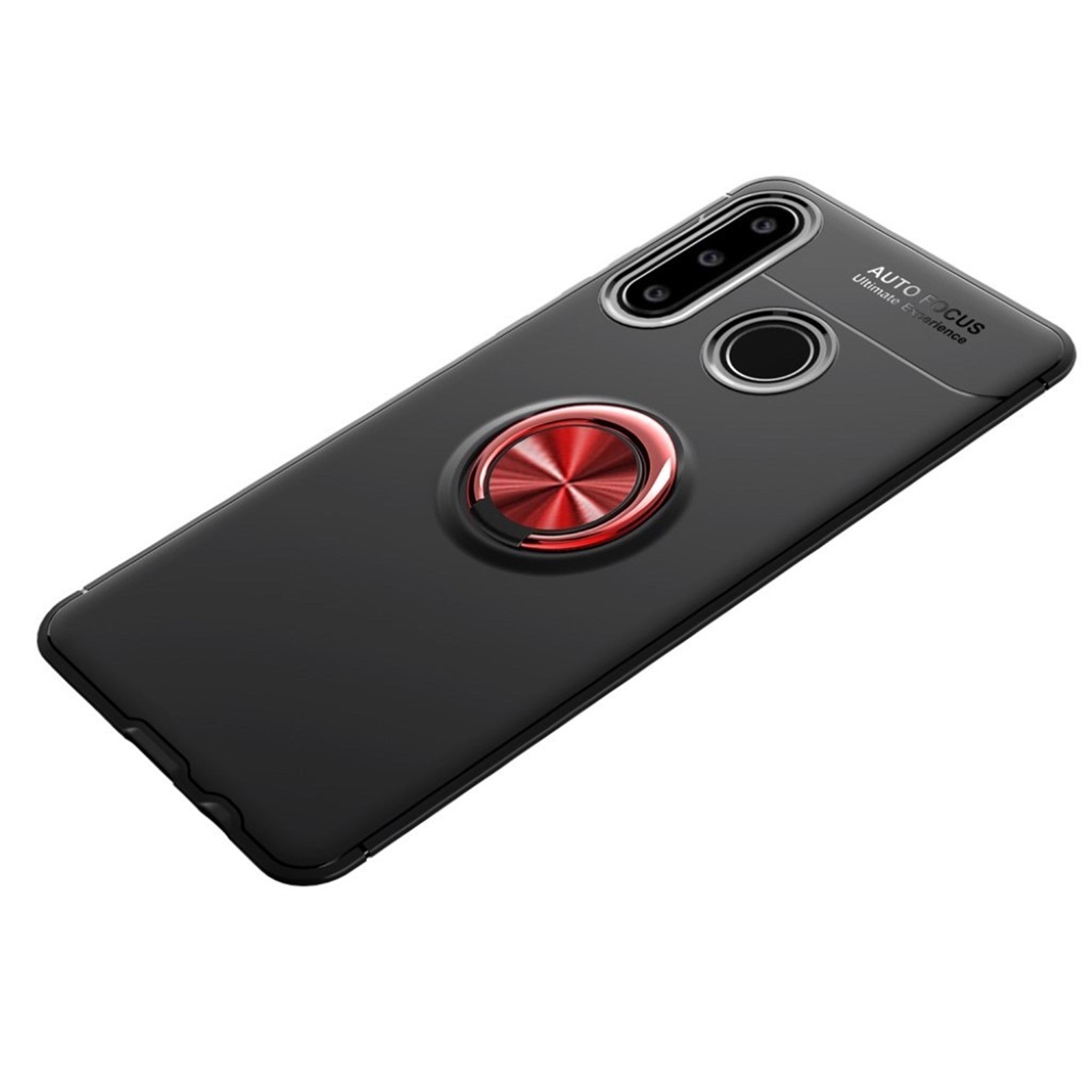 A LENUO black / red metal ring bracket TPU case for your Huawei P30 Lite. Protects your phone from scratches and falls.