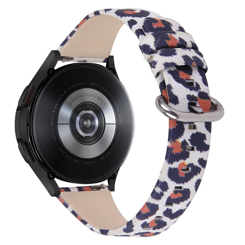 Leopard pattern genuine leather watch strap for Samsung Galaxy Watch - White / Brown Leopard