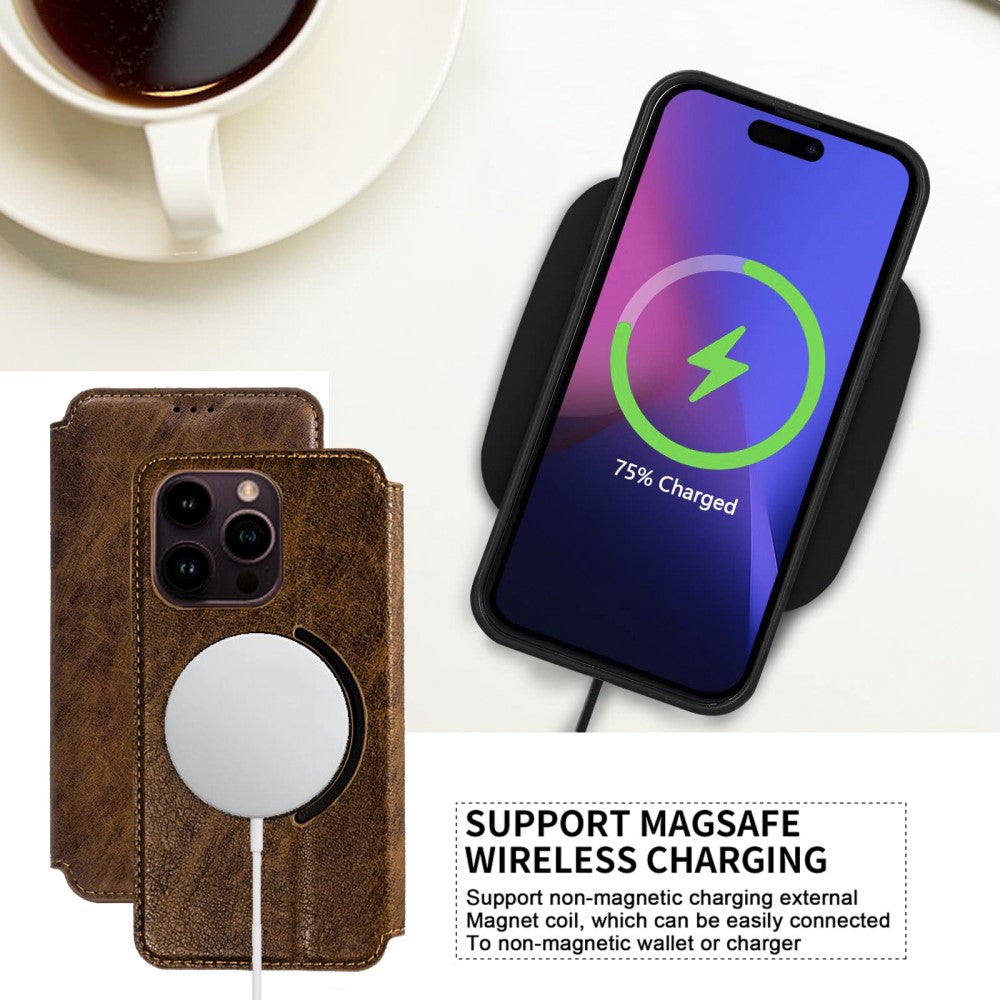 MagSafe Compatible Brown Matte Phone Cover with Wallet for iPhone 15 Plus