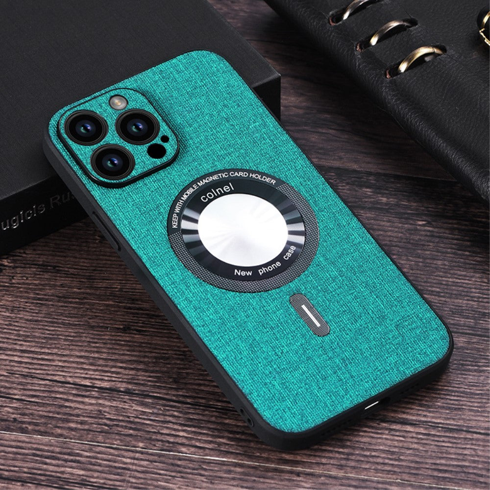Compatible with MagSafe Shockproof Slim Case for iPhone 15 Plus Soft TPU+Cloth Anti-Drop Phone Cover - Cyan
