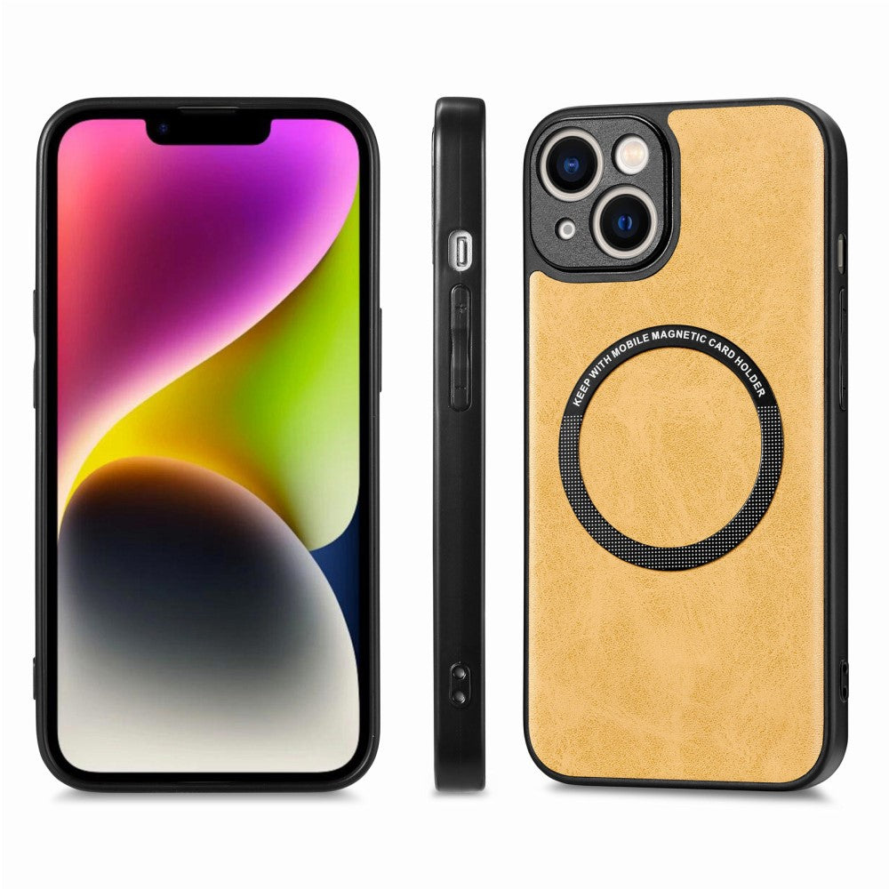 MagSafe Compatible PU Leather Coated PCTPU iPhone 15 Plus Phone Case - Yellow