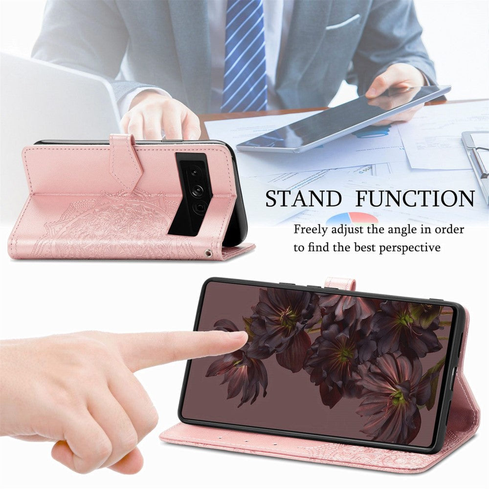 A beautiful leather case with mandala imprint for Google Pixel 7. The Mandala case is made from good quality PU leather and features several card slots, a larger pocket and magnetic closure.
