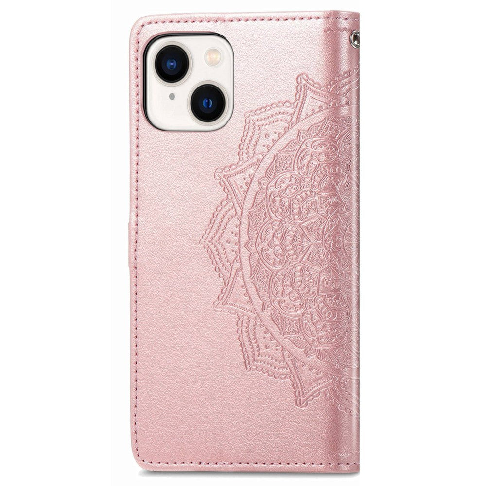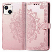 A beautiful leather case with mandala imprint for iPhone 14. The Mandala case is made from good quality PU leather and features several card slots, a larger pocket and magnetic closure.