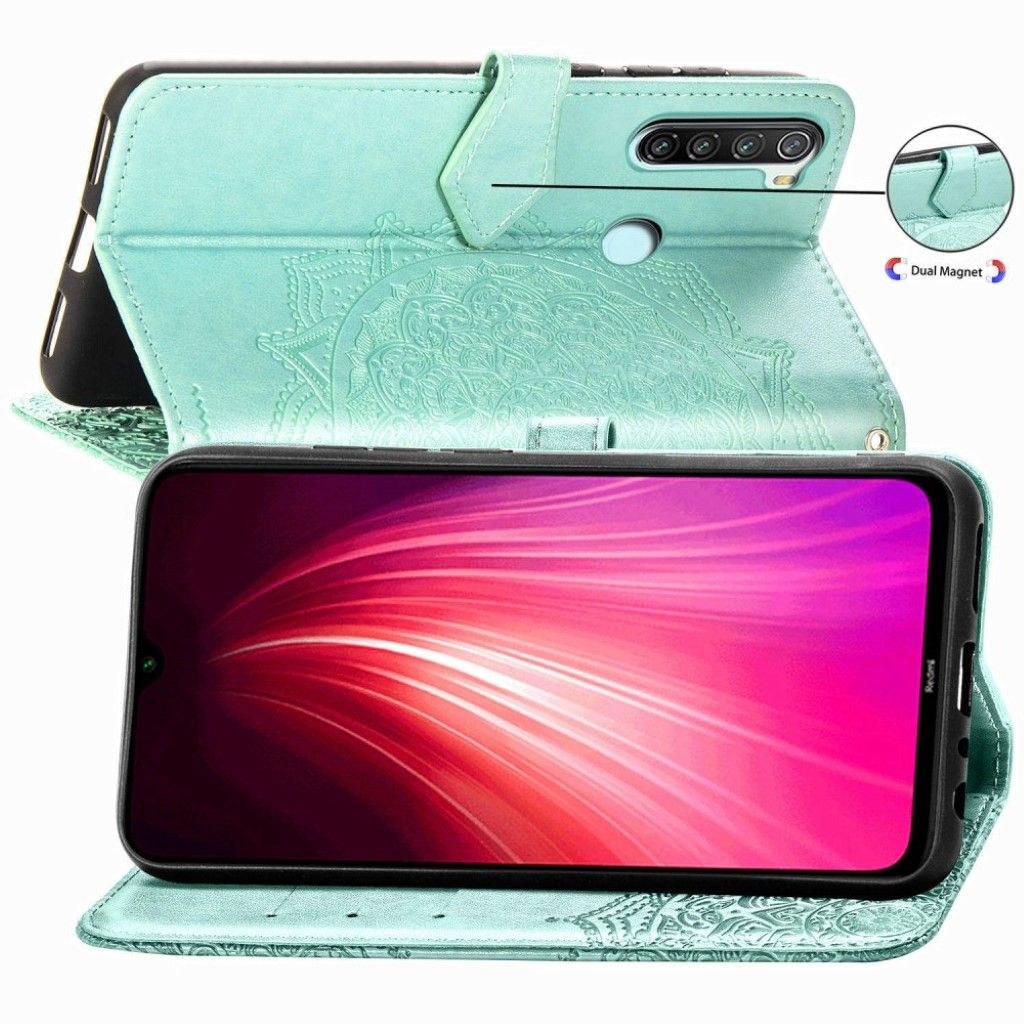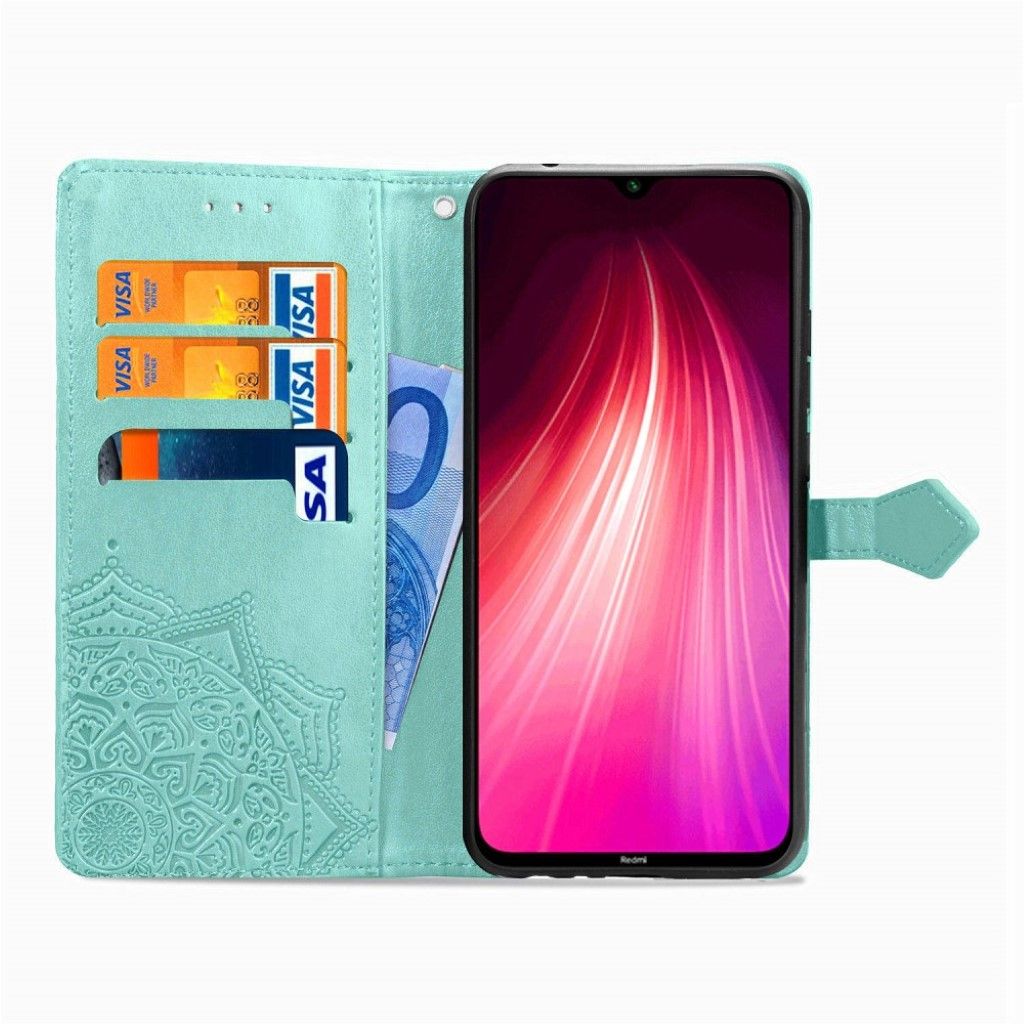 A beatiful leather case with mandala imprint for Xiaomi Redmi Note 8T. The Mandala case is made from good quality PU leather and features several card slots, a larger pocket and magnetic closure.