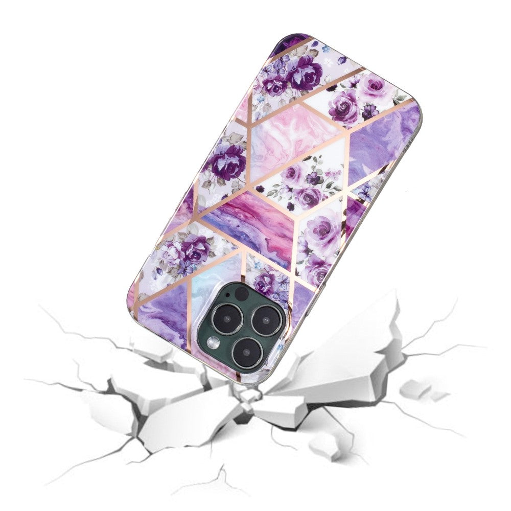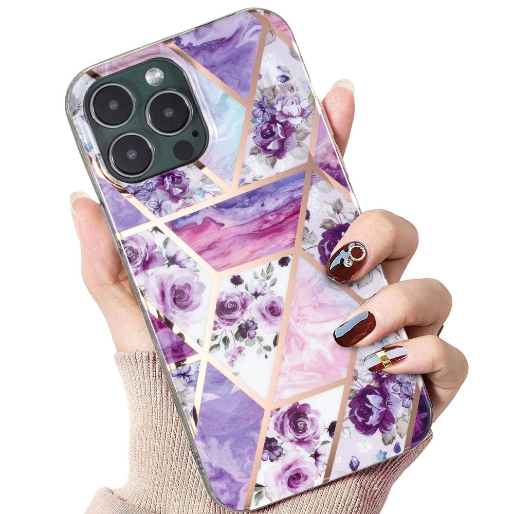 Marble iPhone 13 Pro case - Purple Flower