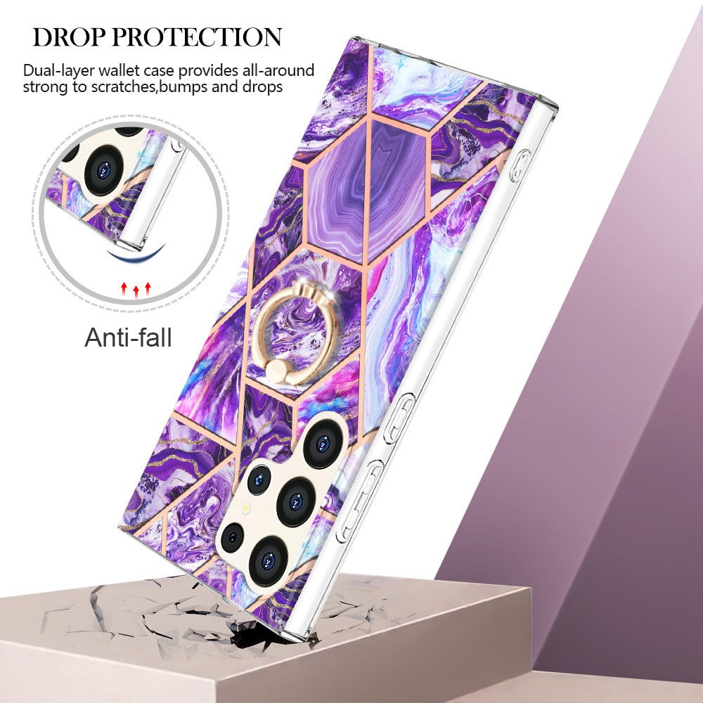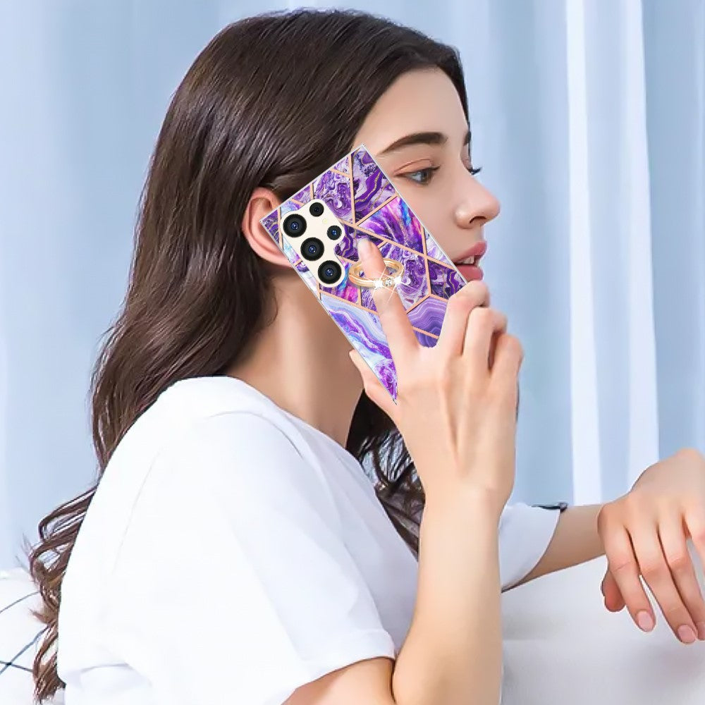 Marble patterned Samsung Galaxy S24 Ultra cover with ring holder - Purple
