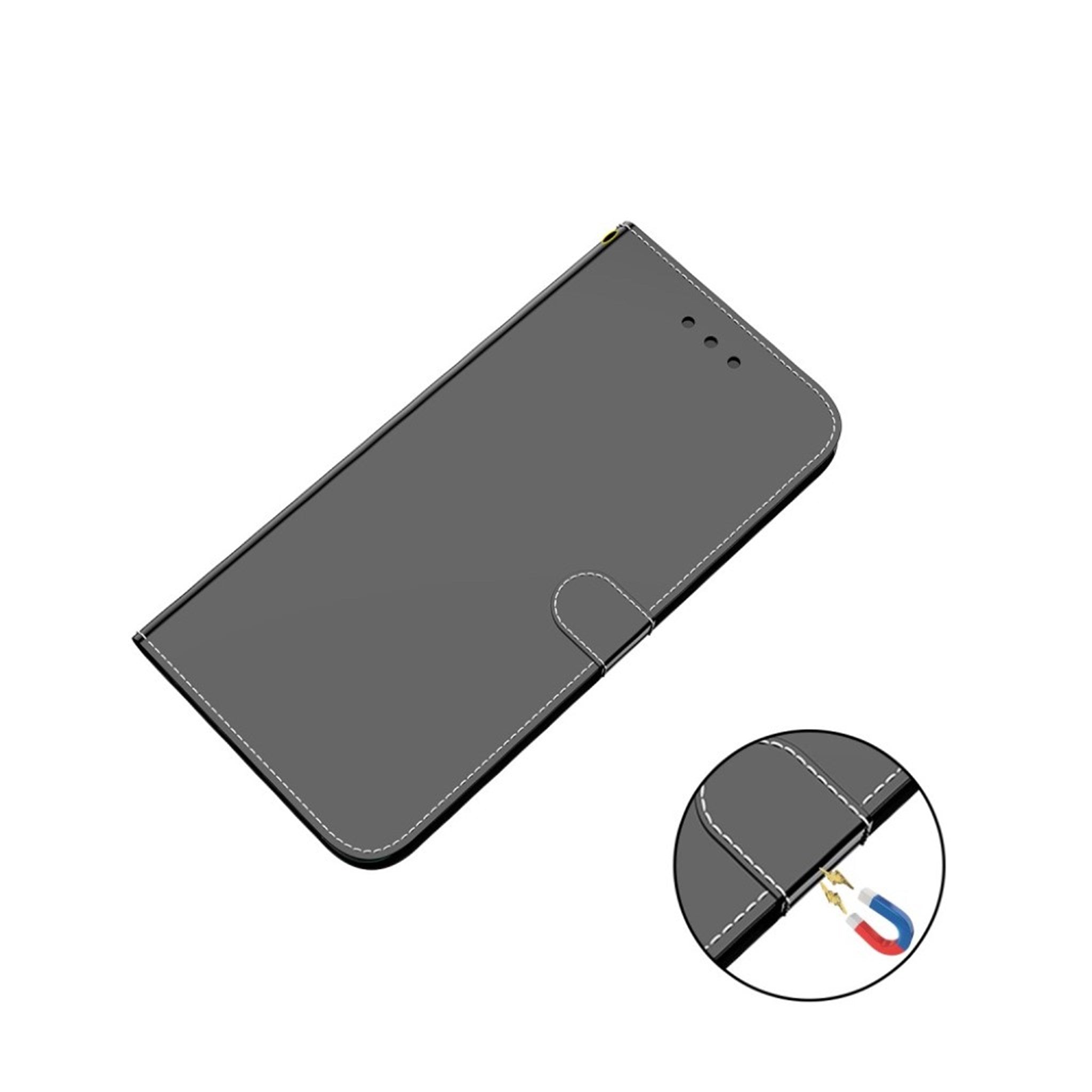 Flashy mirror-case for Nokia 1.3 created from artificial leather with a smooth, reflective surface. Despite its slim design the Mirror case has room for several cards and can be folded to stand in a horizontal position.