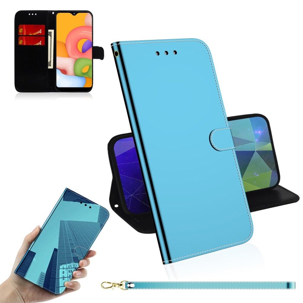 Flashy mirror-case for Samsung Galaxy A01 created from artificial leather with a smooth, reflective surface. Despite its slim design the Mirror case has room for several cards and can be folded to stand in a horizontal position.