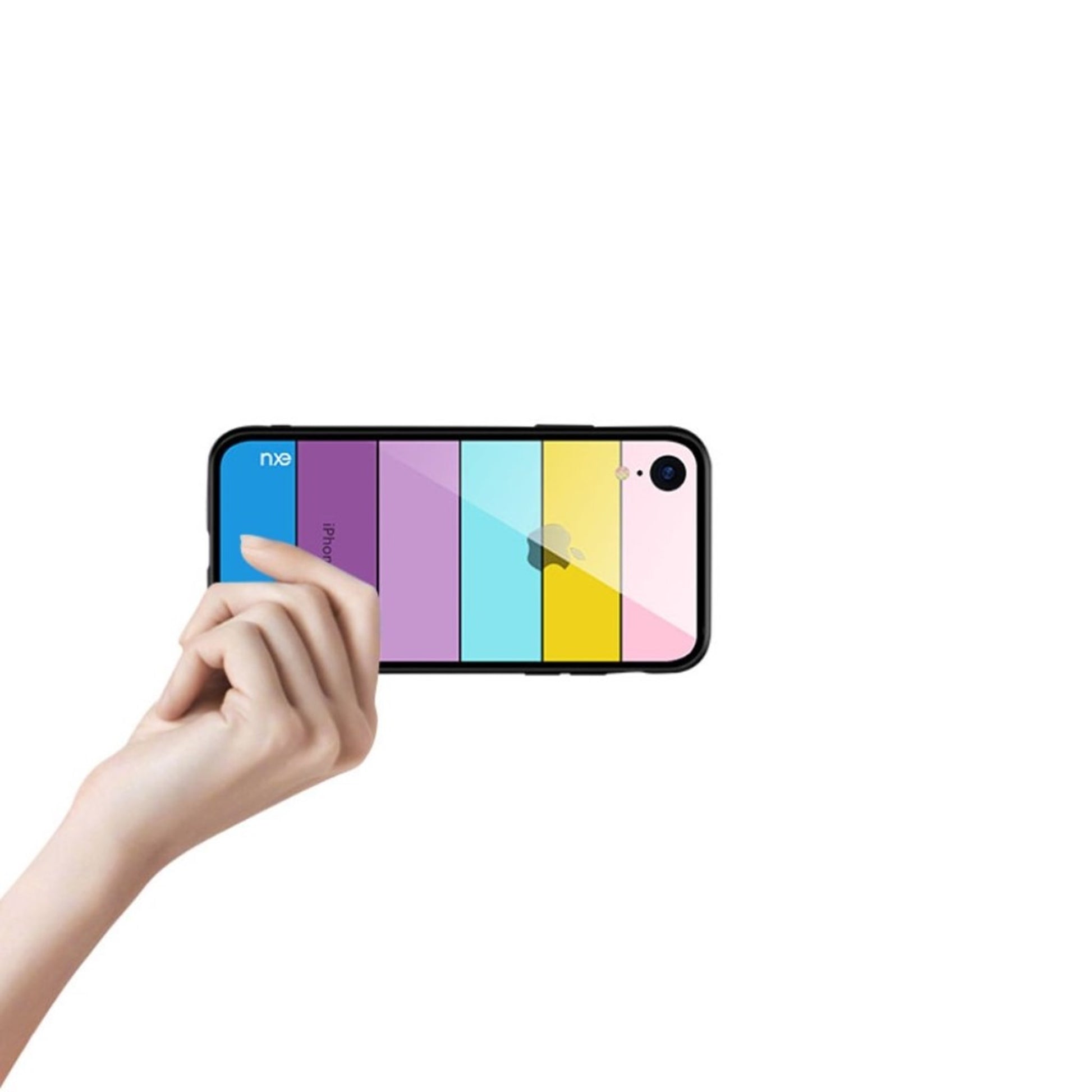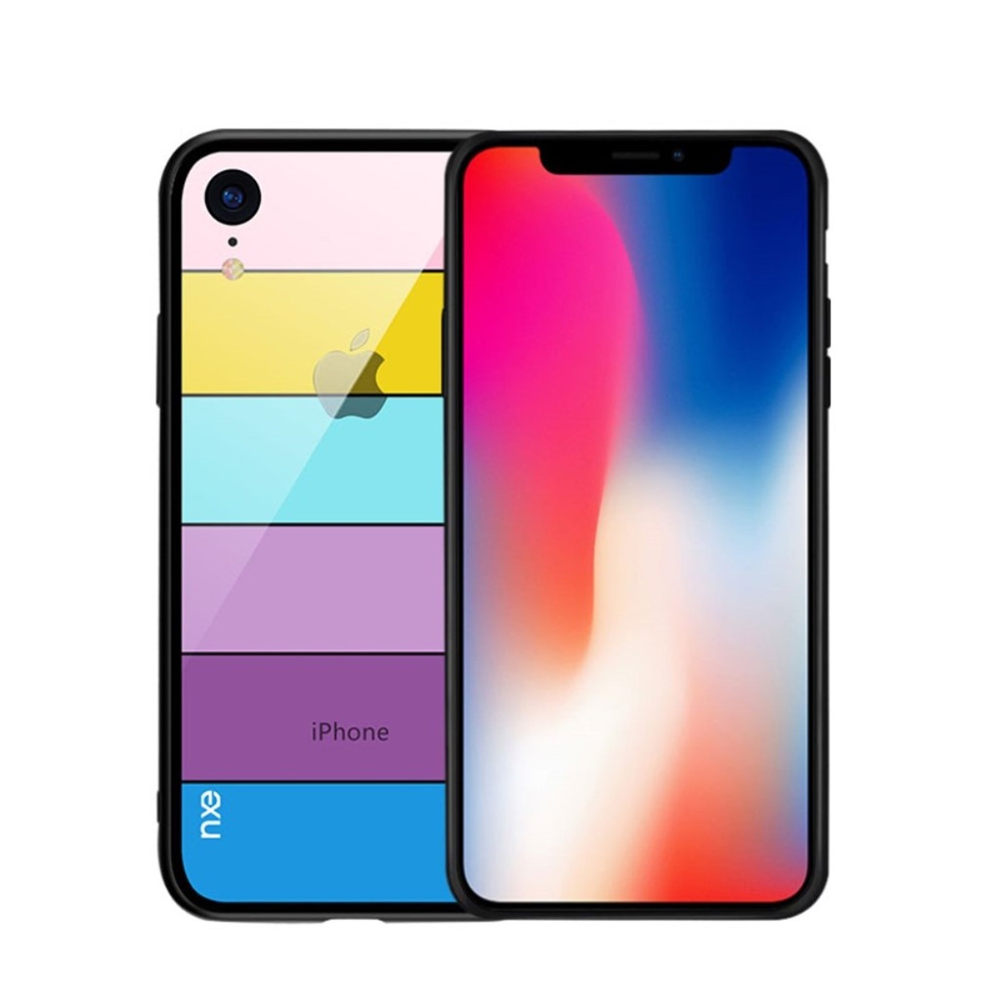 An NXE Style C pattern printing stripes 9H glass back TPU combo edge case for your iPhone Xr. Protects your phone against scratches and falls.